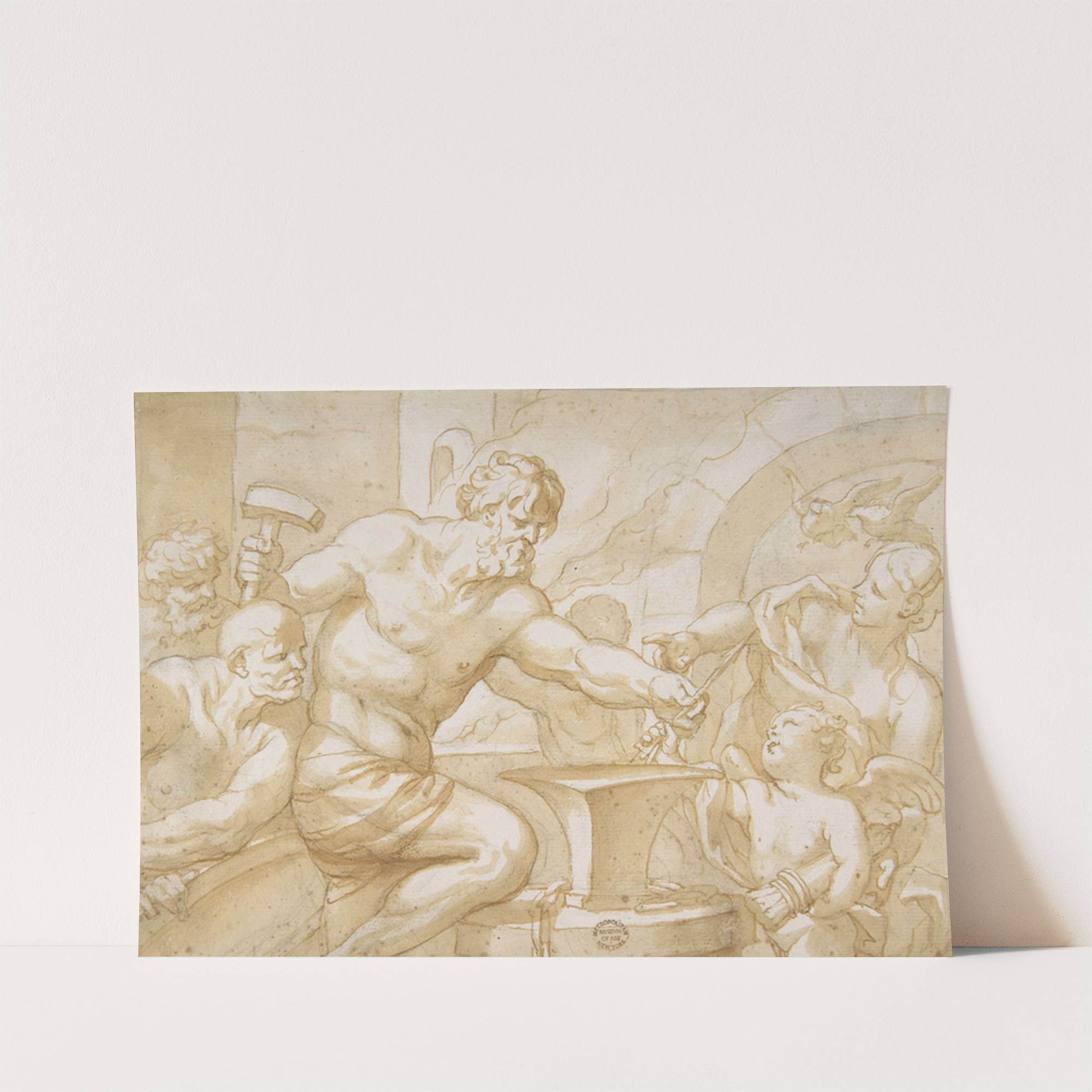Venus and Cupid in Vulcan’s Forge by Domenico Piola - Wall Art Print