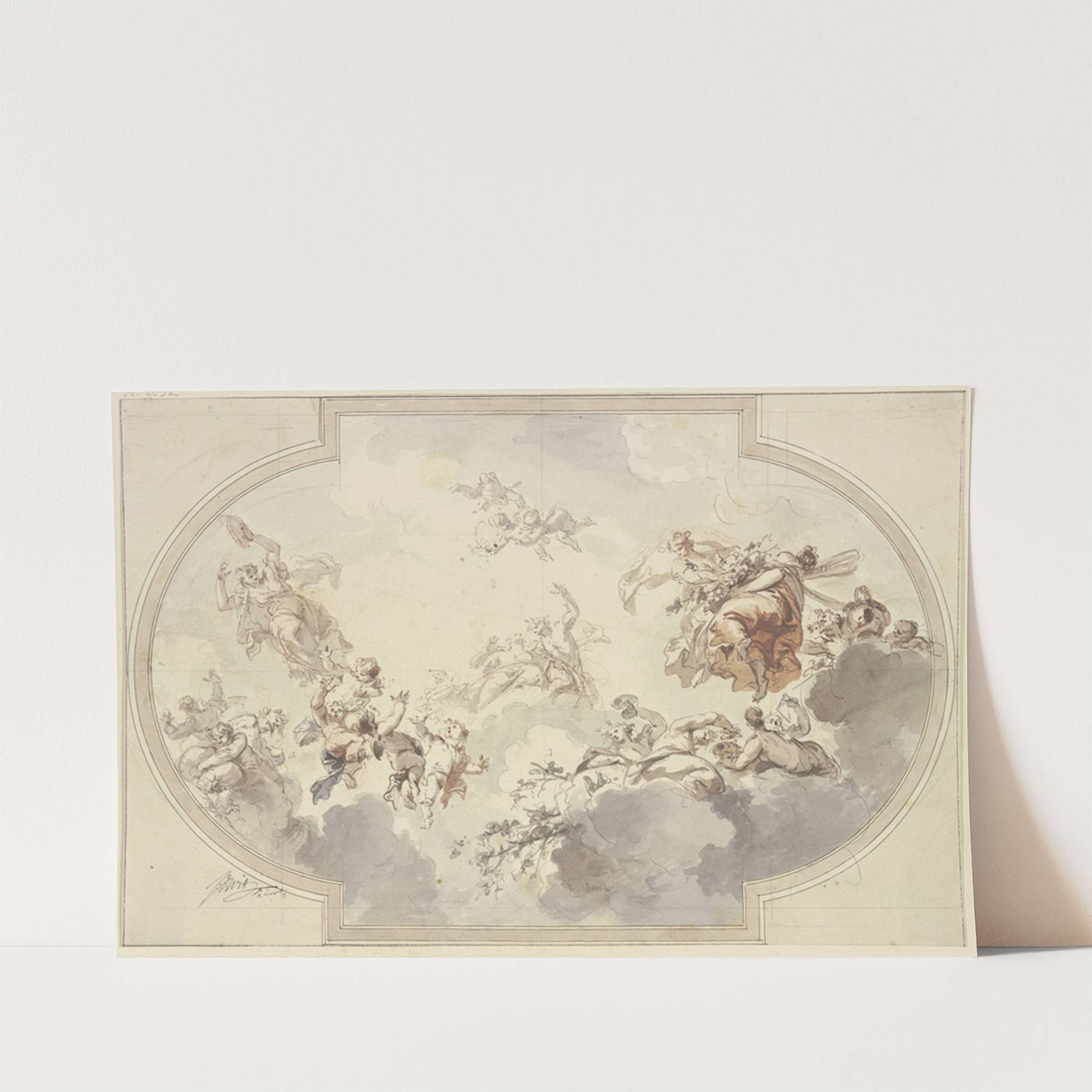 Viele Genien und Bacchanten schweben in Wolken by Jacob de Wit - Wall Art Print