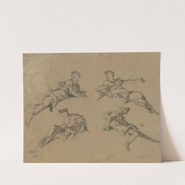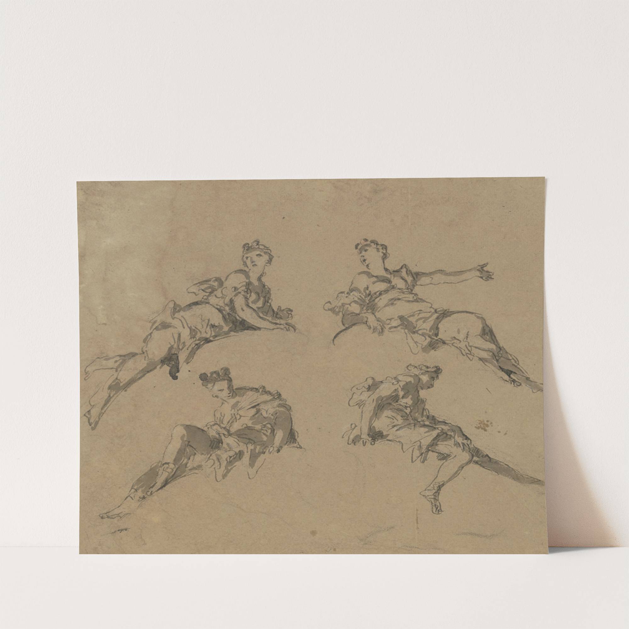 Vier lagernde Frauenfiguren über Tür- oder Fensterwölbungen by Gaspare Diziani - Wall Art Print