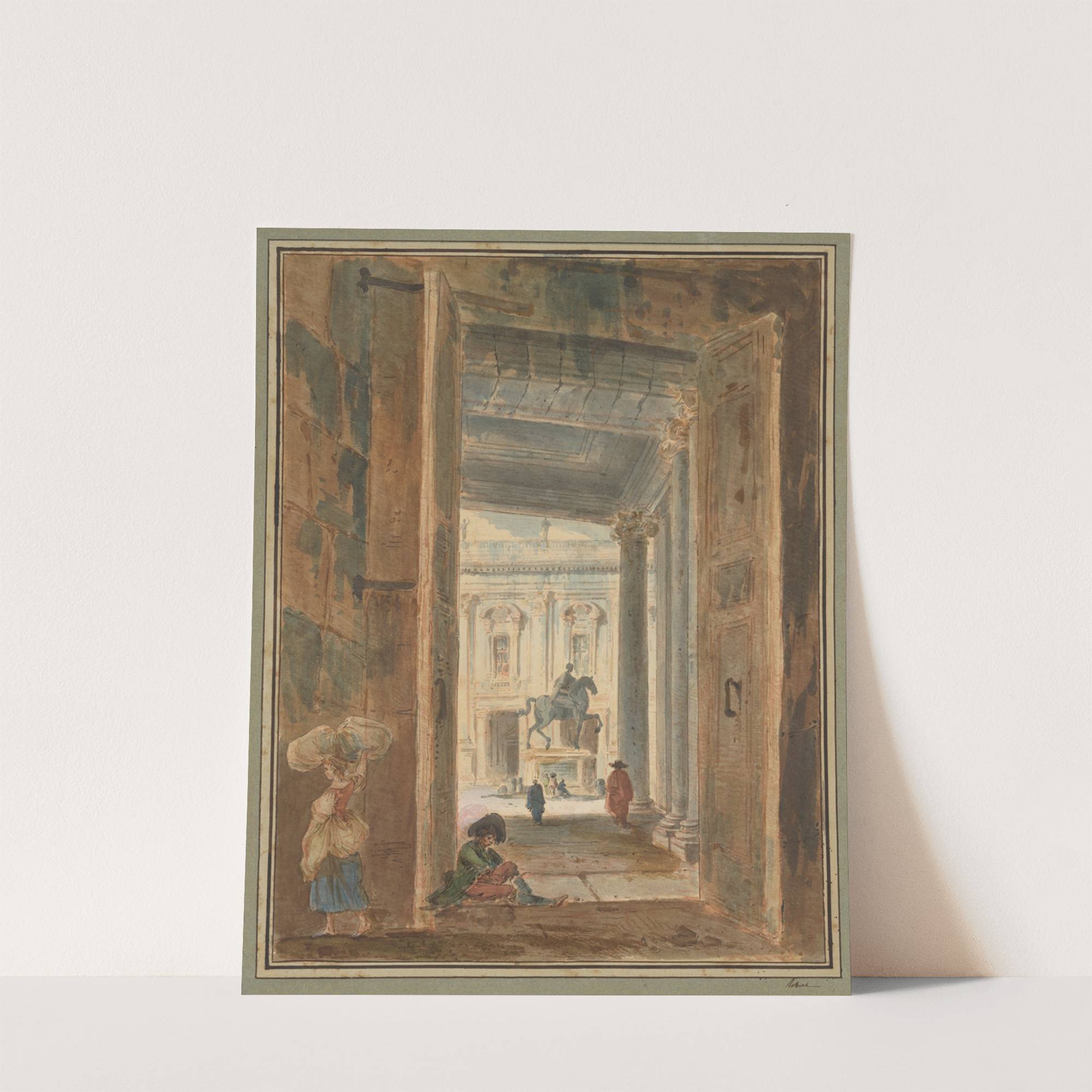 View of the Campidoglio with the Statue of Marcus Aurelius by Hubert Robert - Wall Art Print