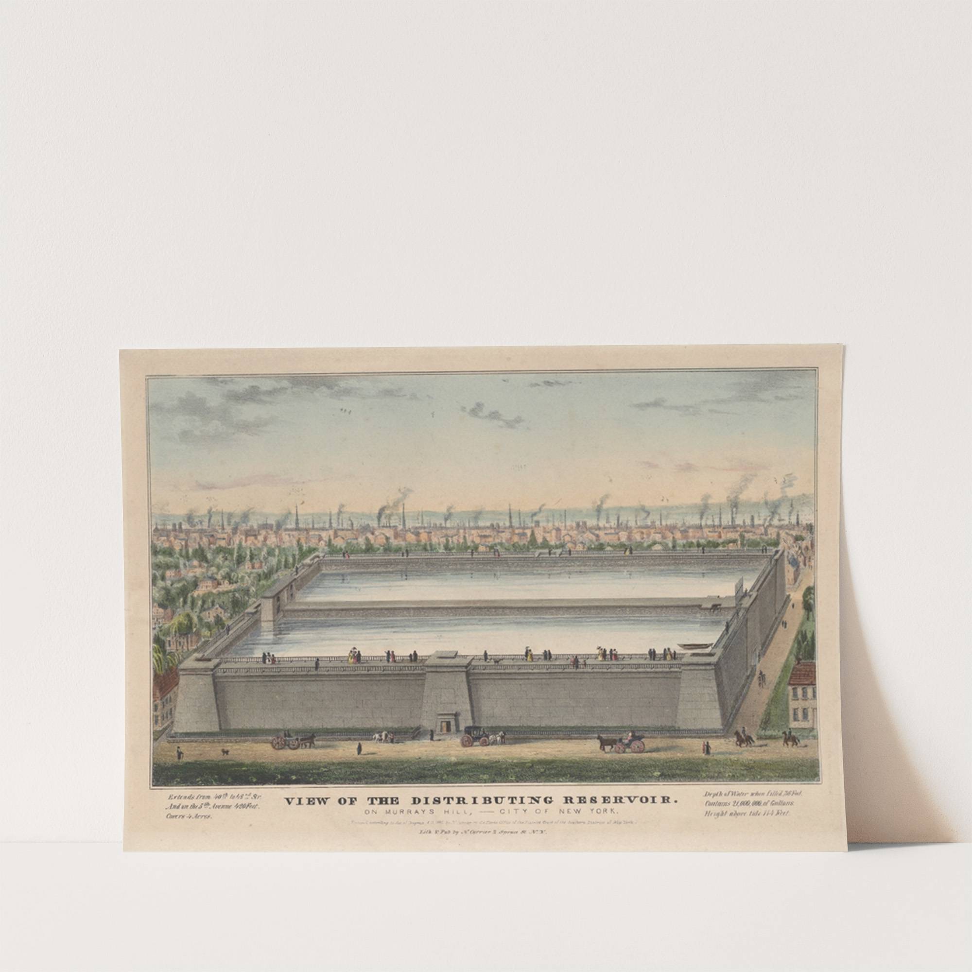View of the Distributing Reservoir on Murray’s Hill, City of New York (1842) by Currier & Ives. - Wall Art Print