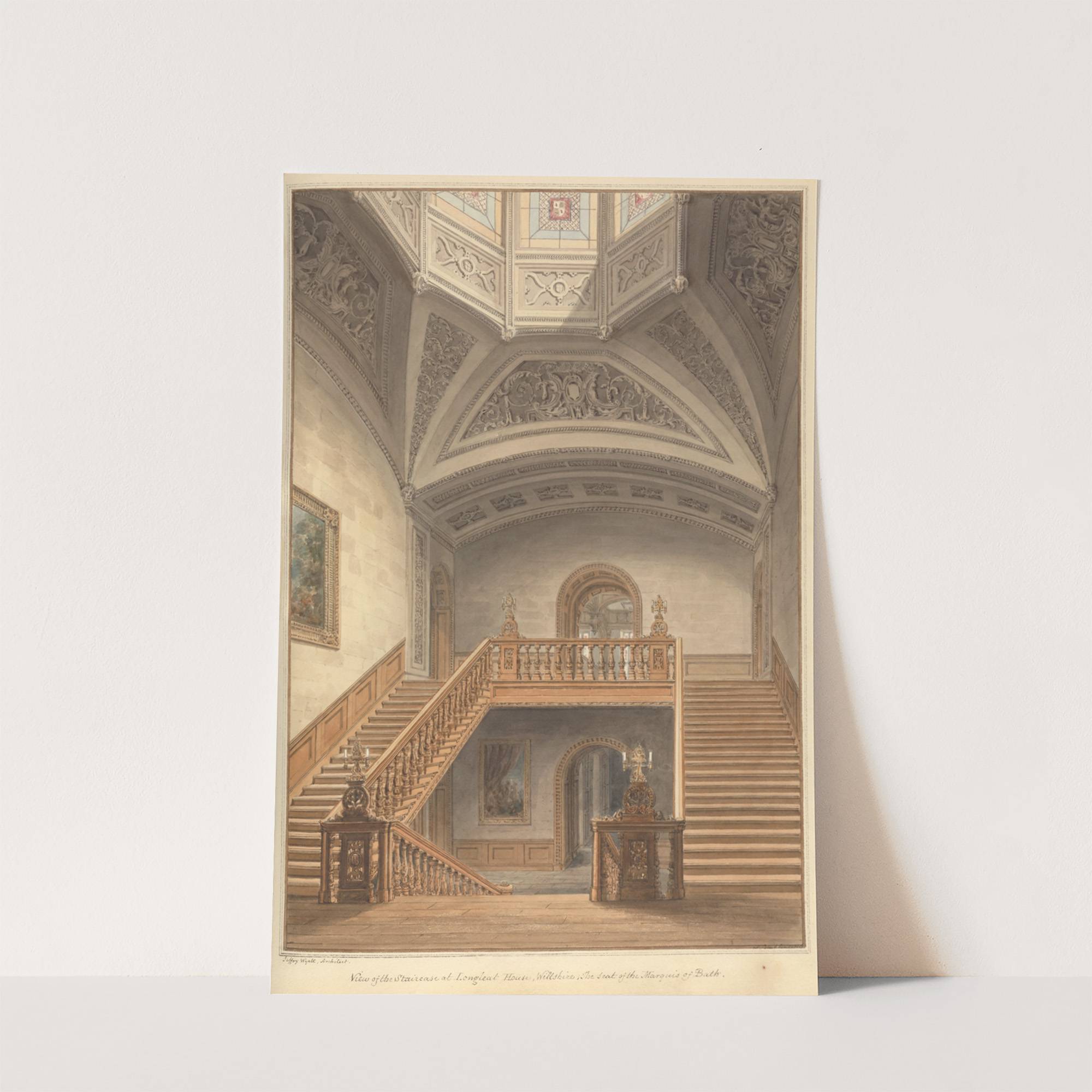 View of the Staircase at Longleat House, Wiltshire: the Seat of the Marquis of Bath by John Buckler  - Wall Art Print