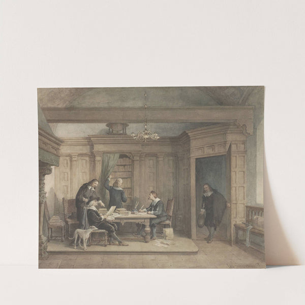 Vijf mannen in interieur by Jan Striening - Wall Art Print