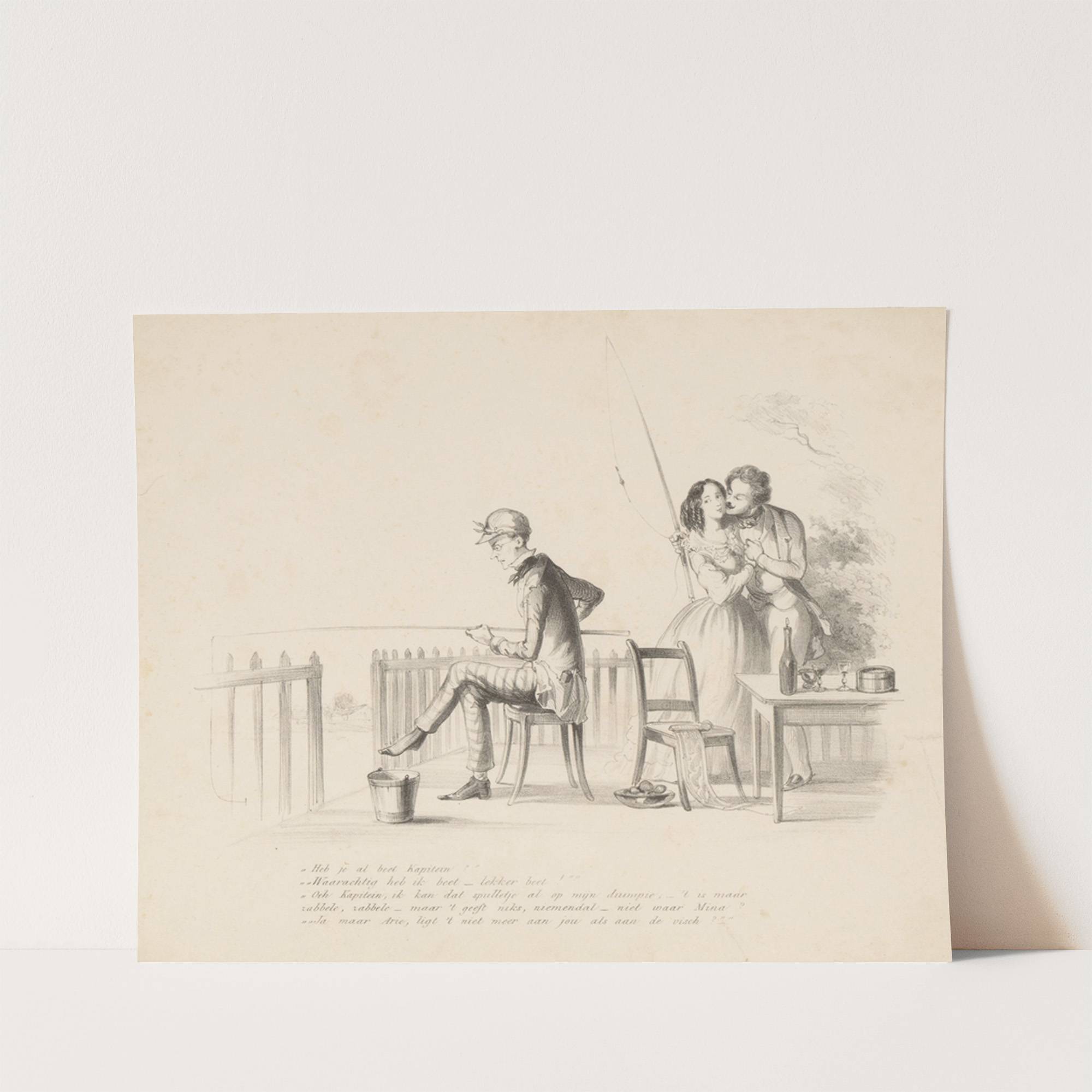 This black-and-white illustration captures a charming rural scene with intricate detailing and a vintage feel. The main subject is a young man seated on a simple wooden chair, intently reading a book while wearing a hat, long-sleeved shirt, trousers, socks,...
