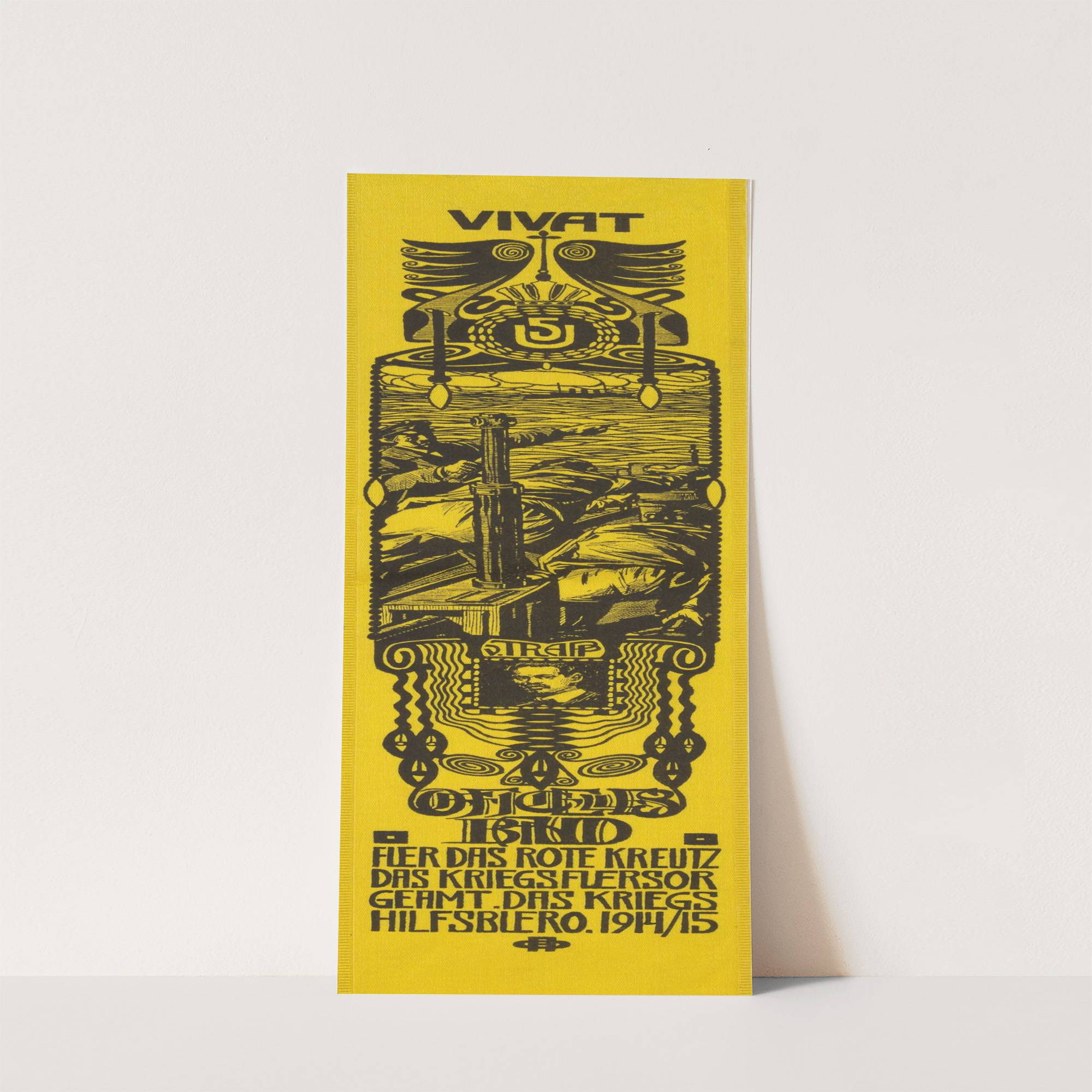 This striking art print features "Vivat U5" by the artist Alfred Offner from 1915. Rendered in bold black ink on a vibrant yellow background, the piece showcases intricate and detailed line work that captures the viewer's attention immediately. The design...