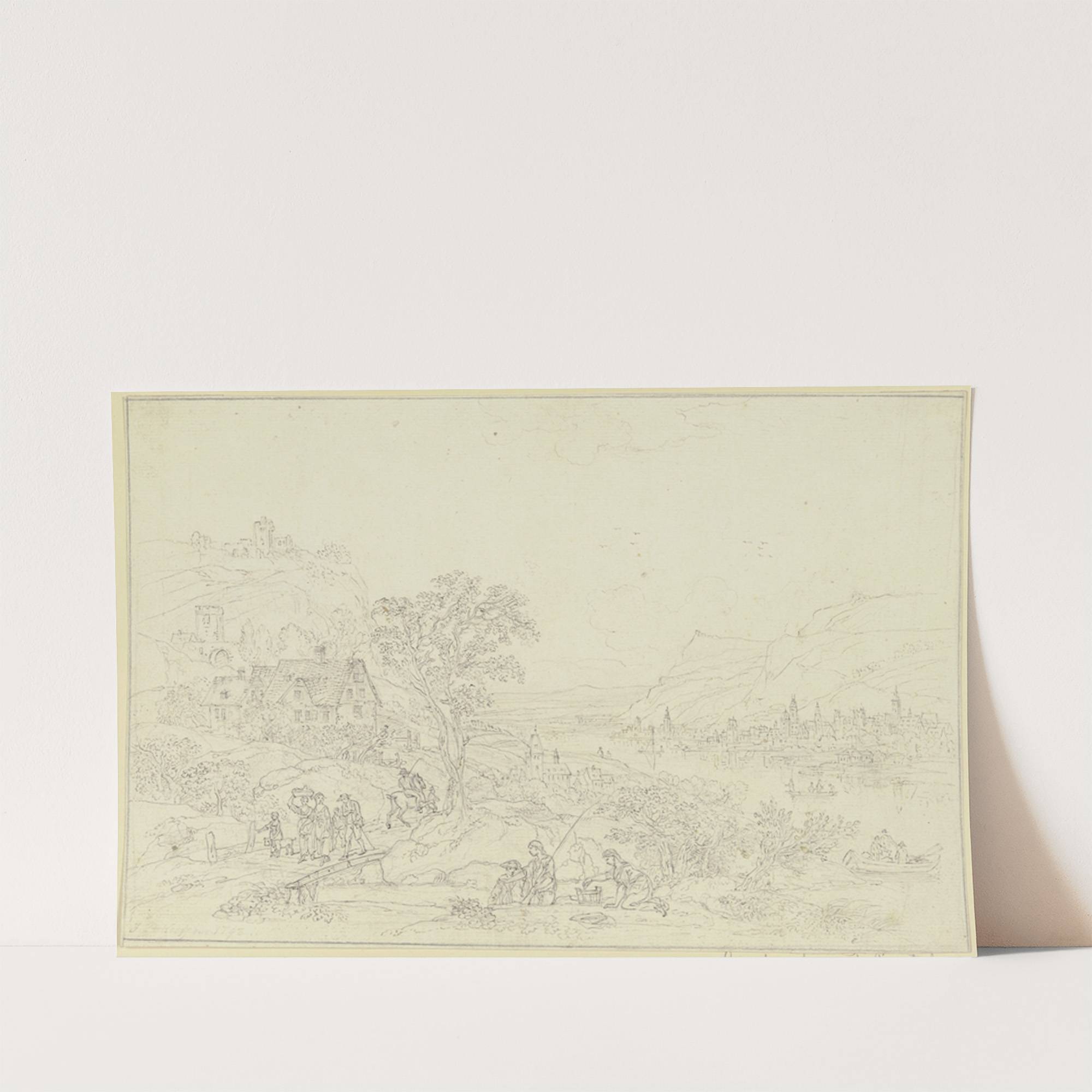 Von Gebirgen umgebenes Flusstal, jenseits des Flusses eine Stadt by Johann Peter Neef - Wall Art Print
