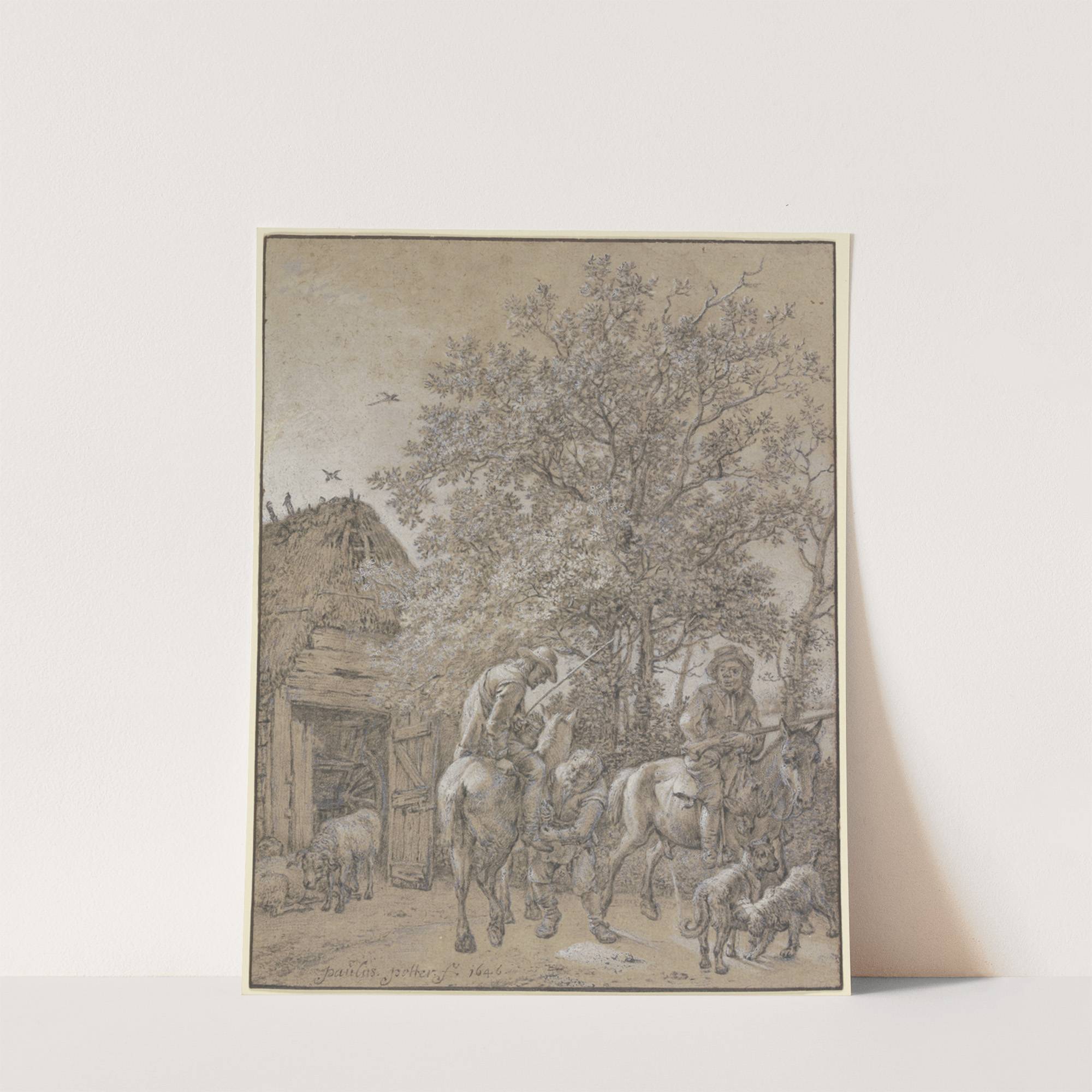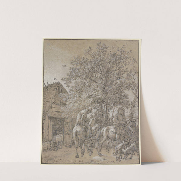 Vor einer Hütte halten zwei Reiter by Paulus Potter - Wall Art Print