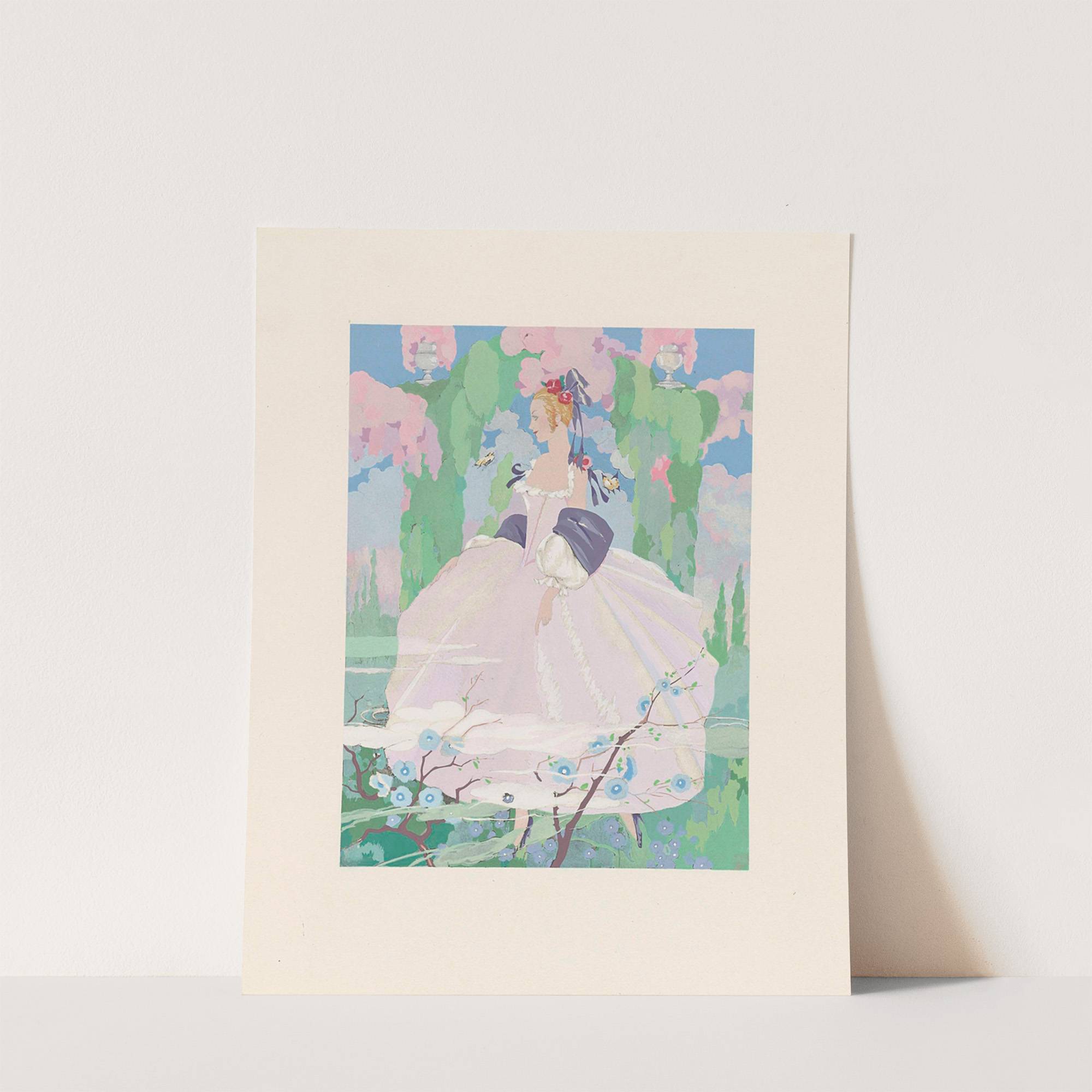 Vrouw in roze jurk in tuin by Umberto Brunelleschi - Wall Art Print