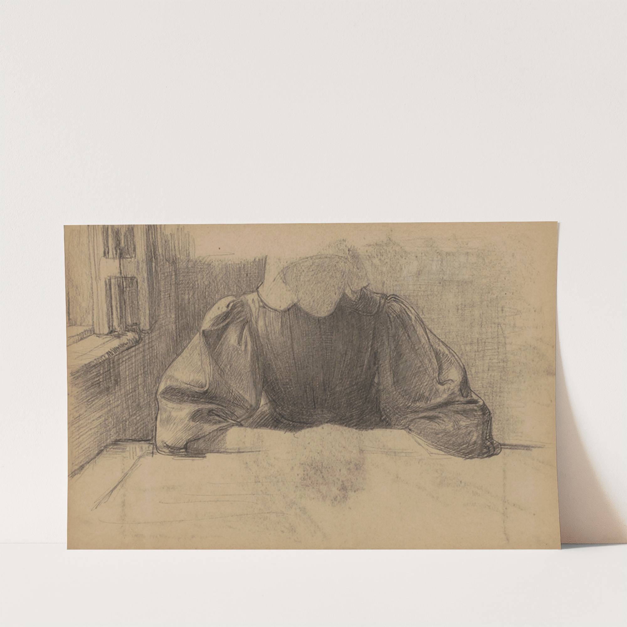 Vrouw met een boerenmuts gezeten aan een tafel bij een raam by Jan Veth - Wall Art Print