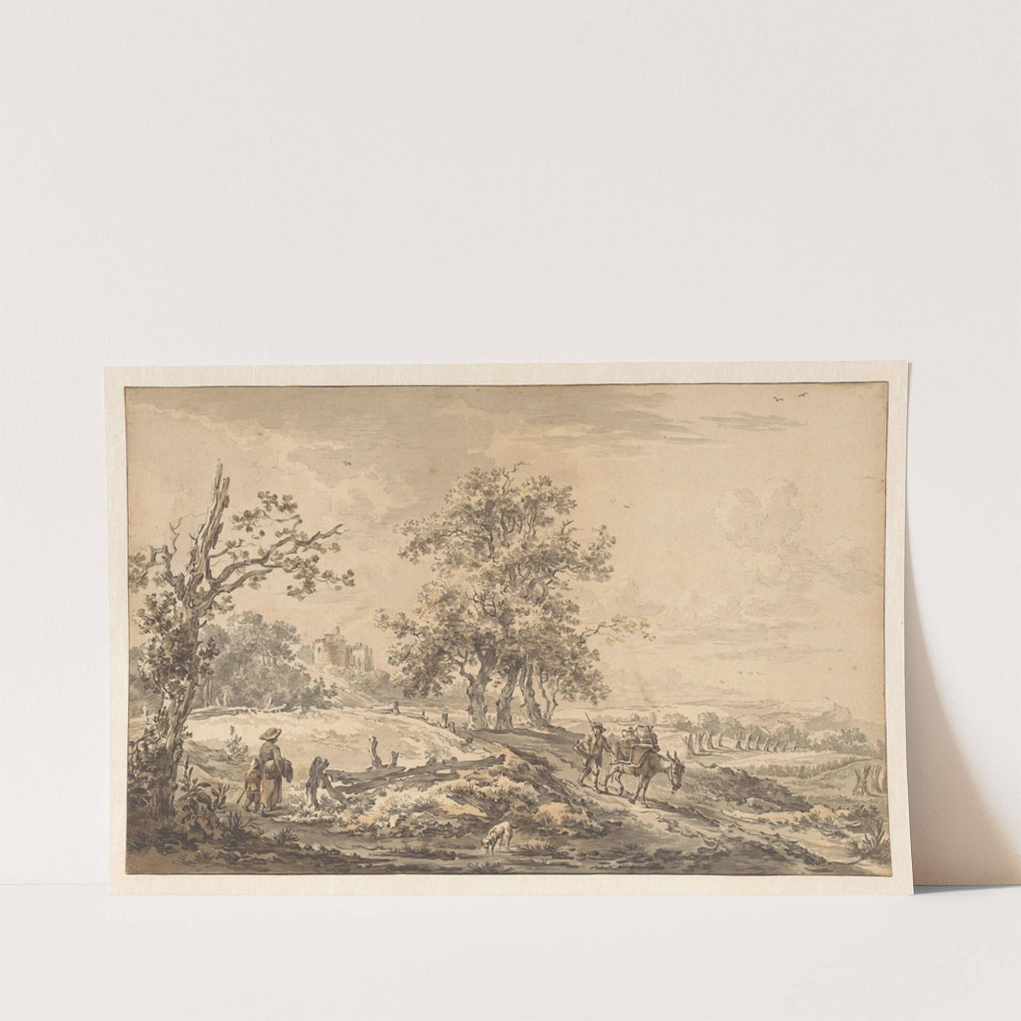 Vrouw met kind en man met ezel in landschap (1755 - 1818) by Egbert van Drielst - Wall Art Print