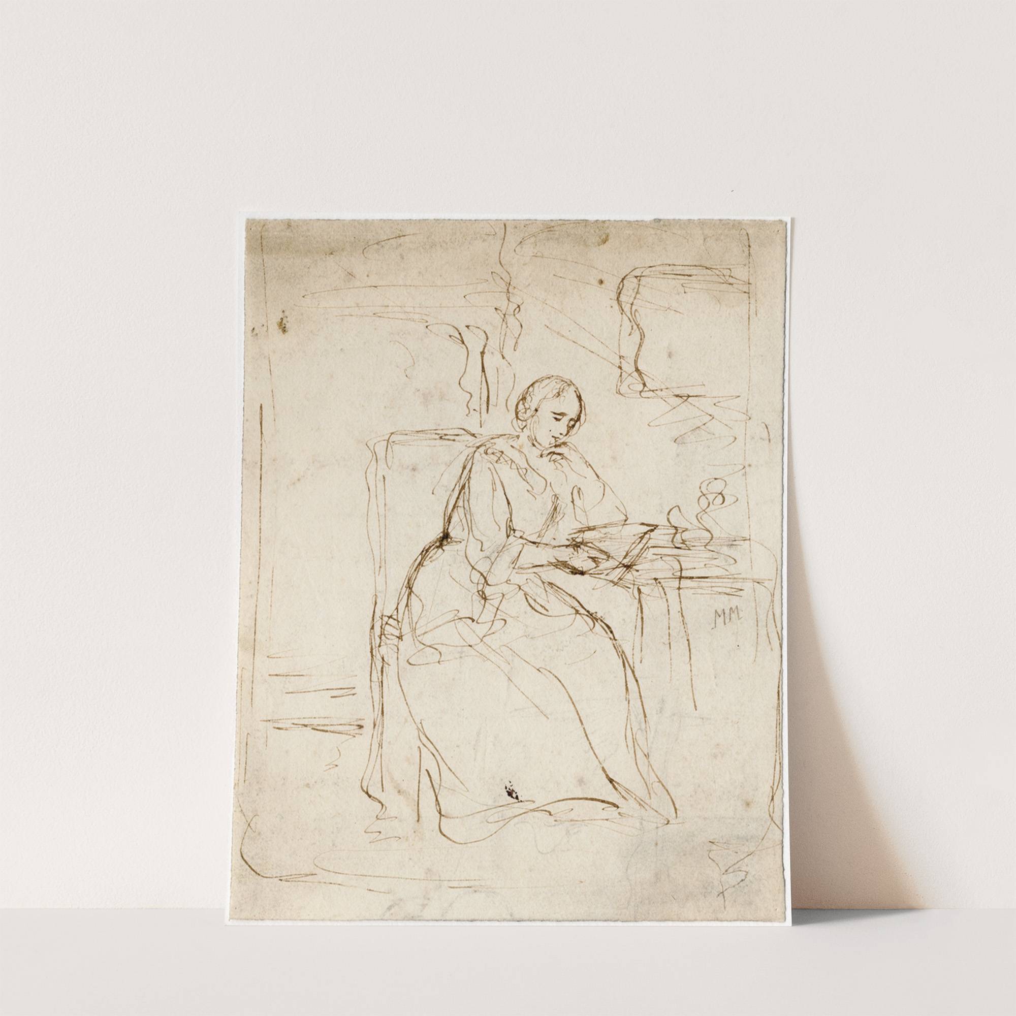 Vrouw zit te lezen aan tafel by Matthijs Maris - Wall Art Print