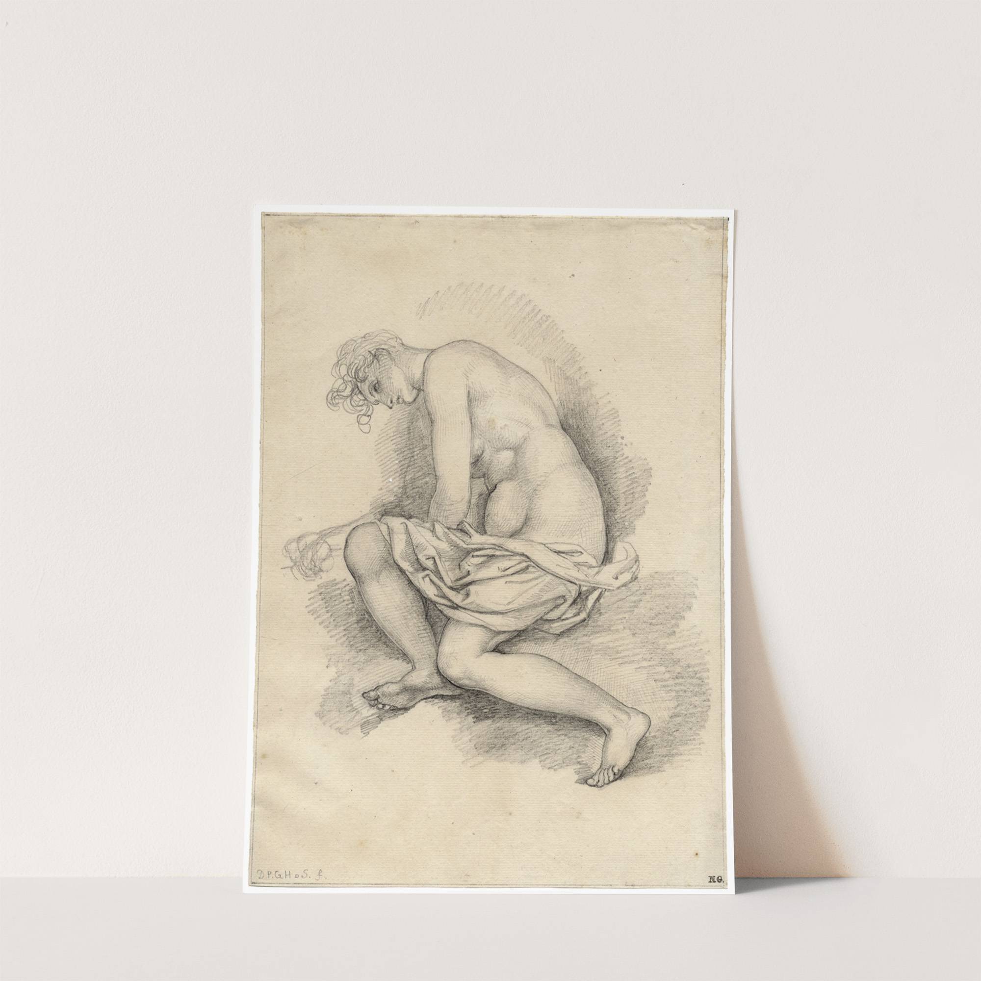 Vrouwelijk naakt, zittend en leunend op de ellebogen by David Humbert de Superville - Wall Art Print