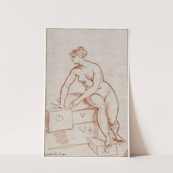 Vrouwelijk naakt, zittend op enige gemerkte blokken by David Humbert de Superville - Wall Art Print