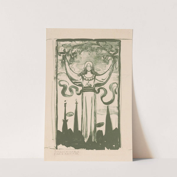 Vrouwenfiguur die een tak met bloemen boven haar hoofd houdt by Antoon Derkinderen - Wall Art Print