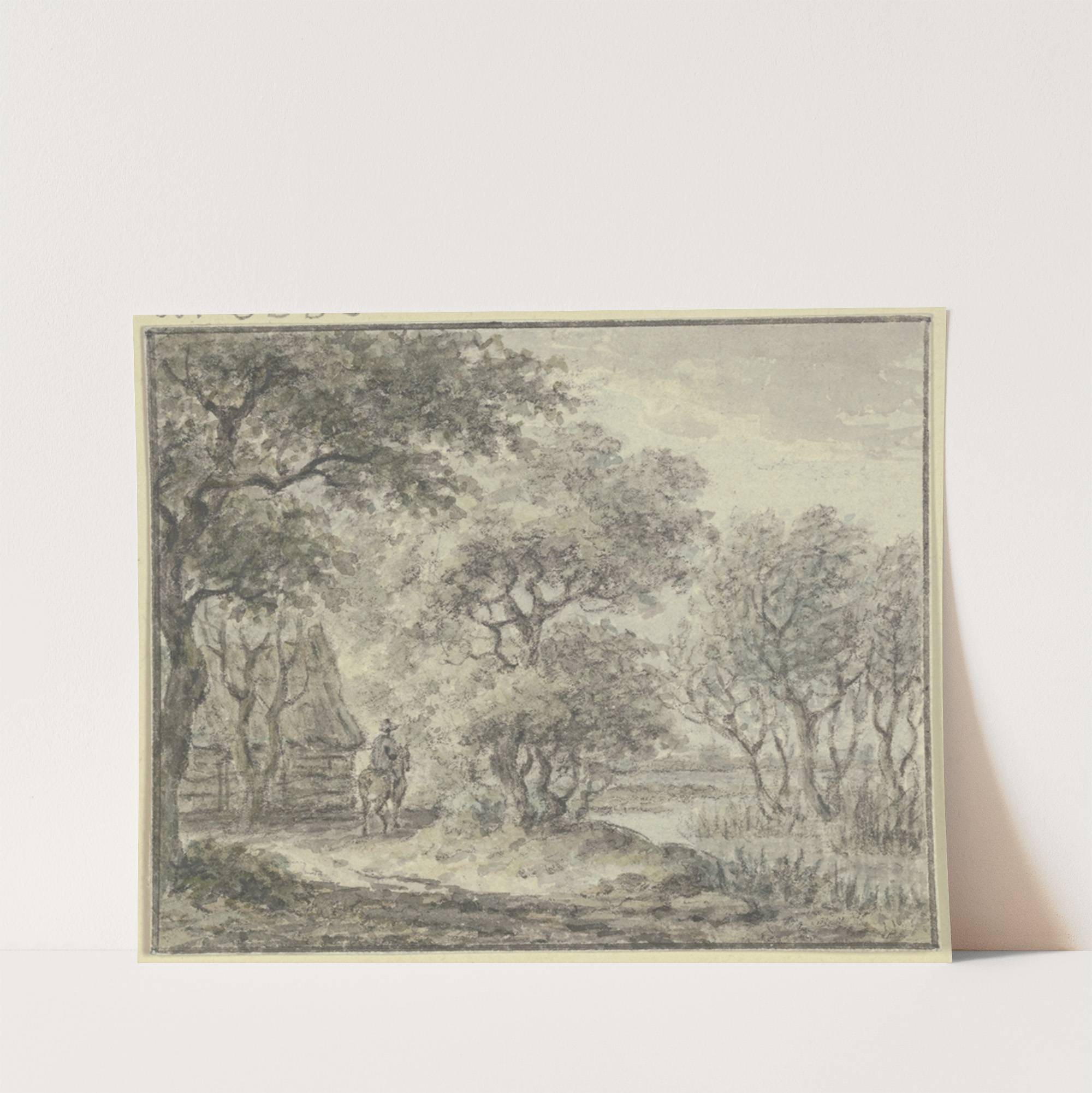 Waldpartie mit Wasser und einem Haus, dabei ein Reiter by Jan Evert Grave - Wall Art Print