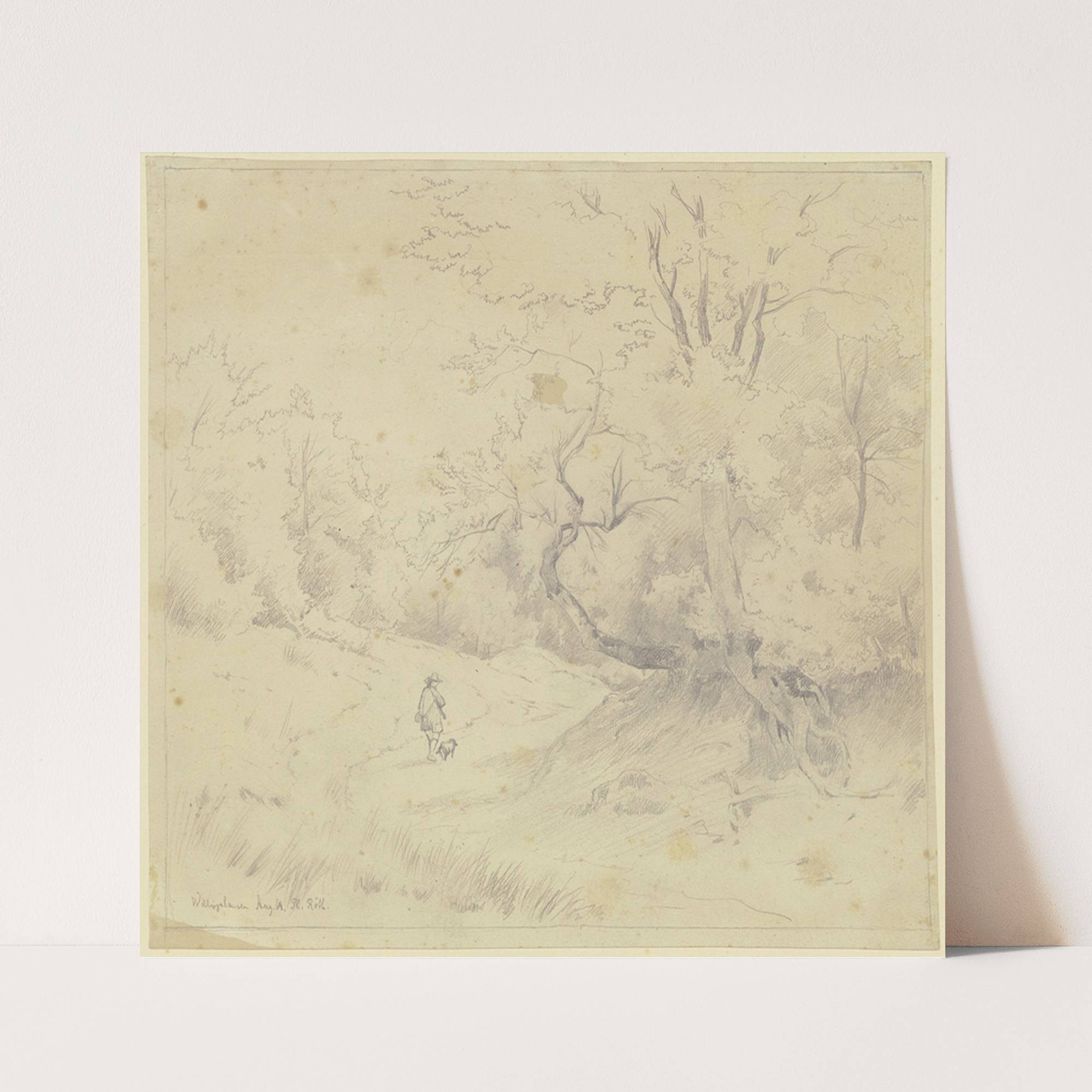 Waldweg bei Willingshausen mit Jäger und Hund by Philipp Röth - Wall Art Print