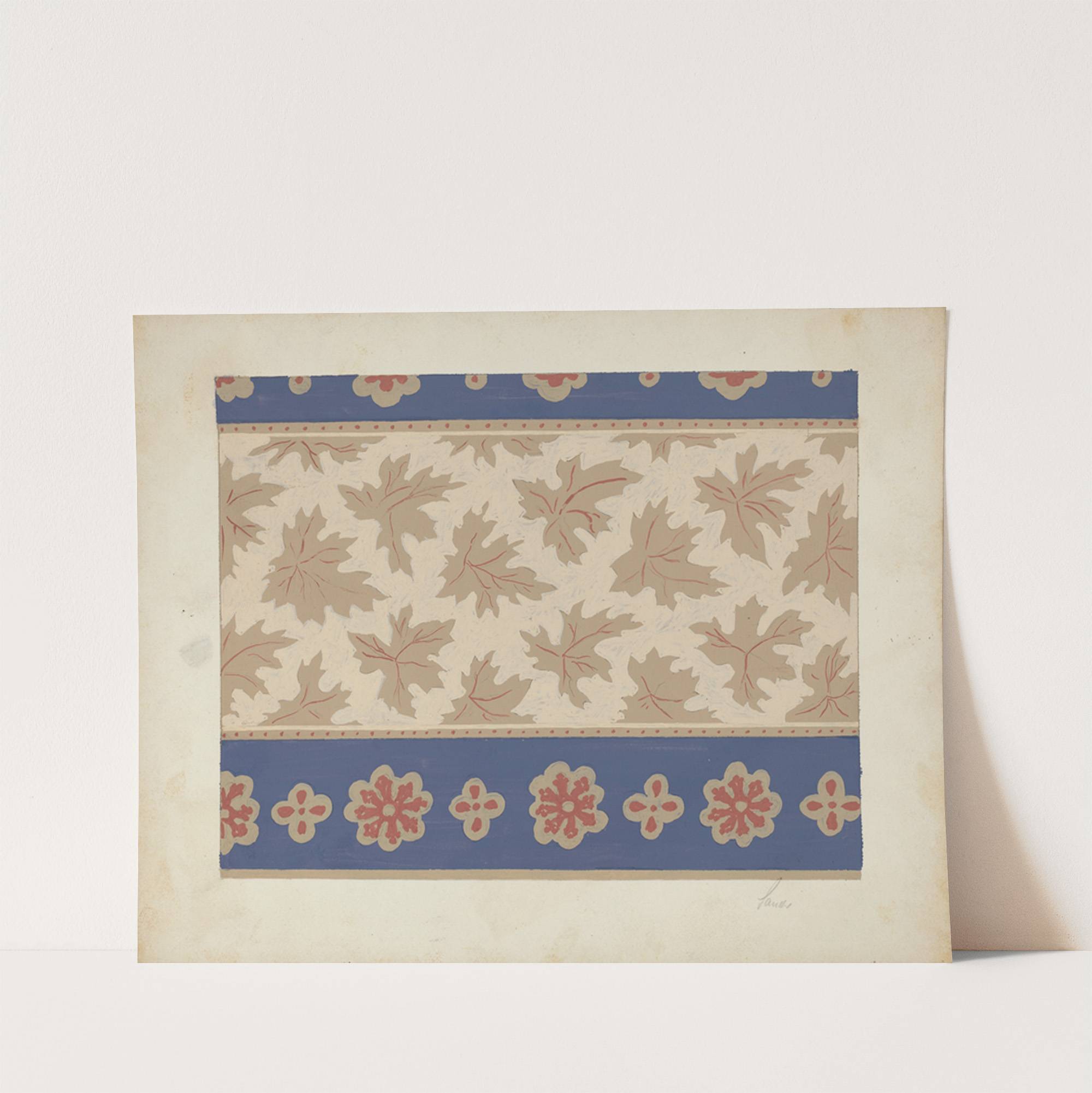 This art print features a vintage-inspired wallpaper design with a classic, timeless appeal. The central pattern showcases an elegant array of beige maple leaves scattered across a cream background, creating a serene and natural effect. Above the maple leaves, a...