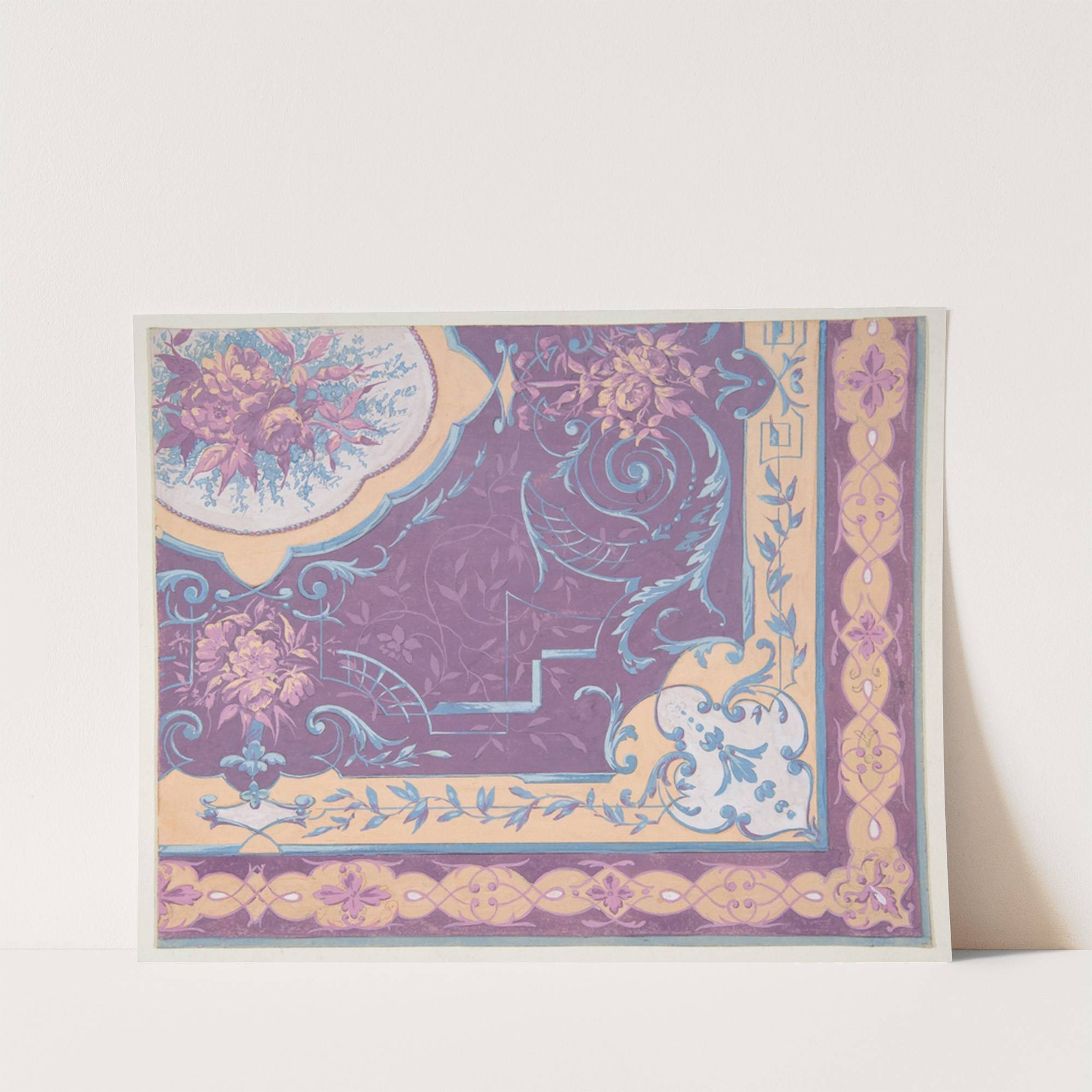 Wallpaper design featuring bouquets of roses, strapwork, and rinceaux by Jules-Edmond-Charles Lachaise - Wall Art Print