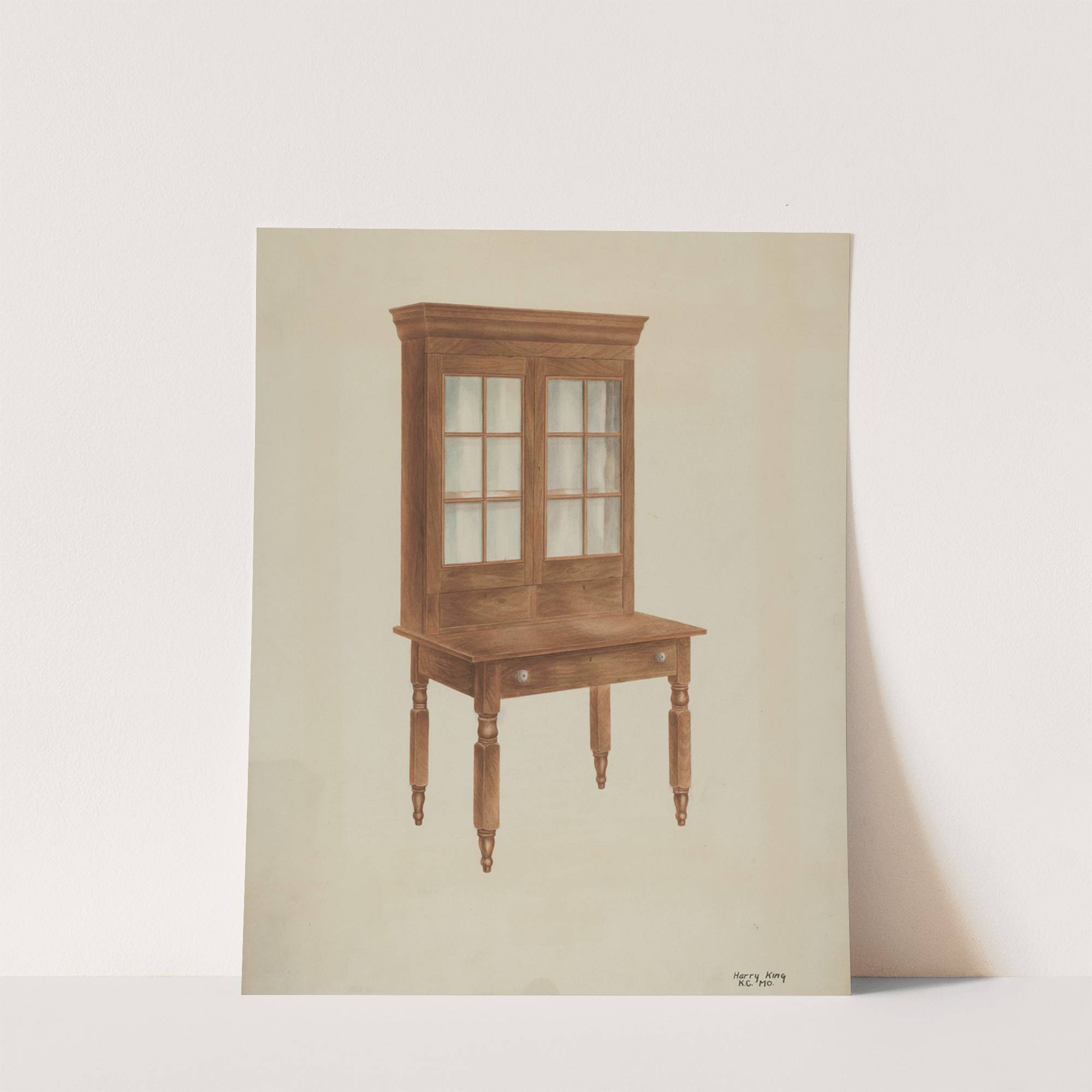 Walnut Desk and Bookcase by Harry King - Wall Art Print
