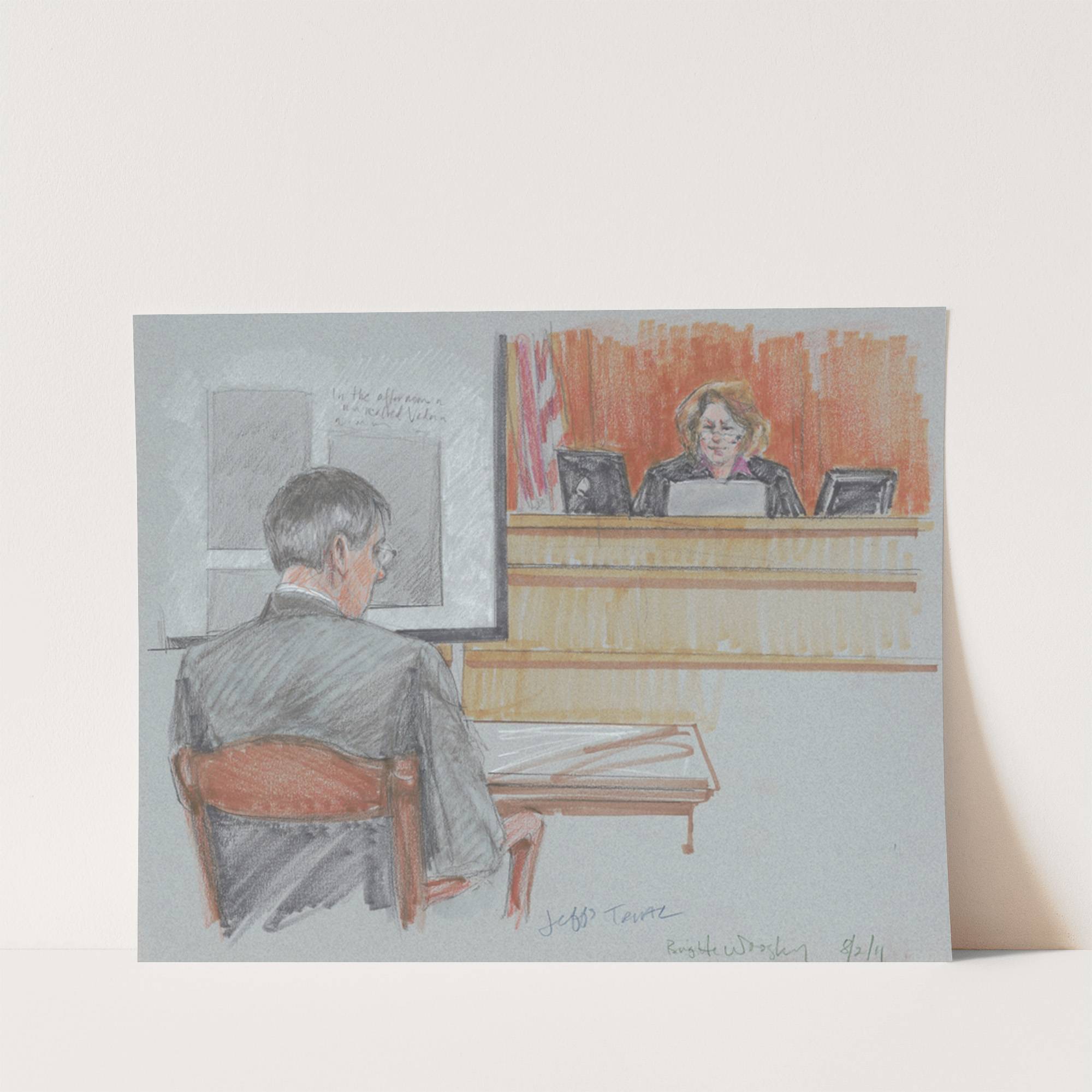 Warren Jeffs, seated before a judge during his trial for child abuse by Brigitte Woosley - Wall Art Print