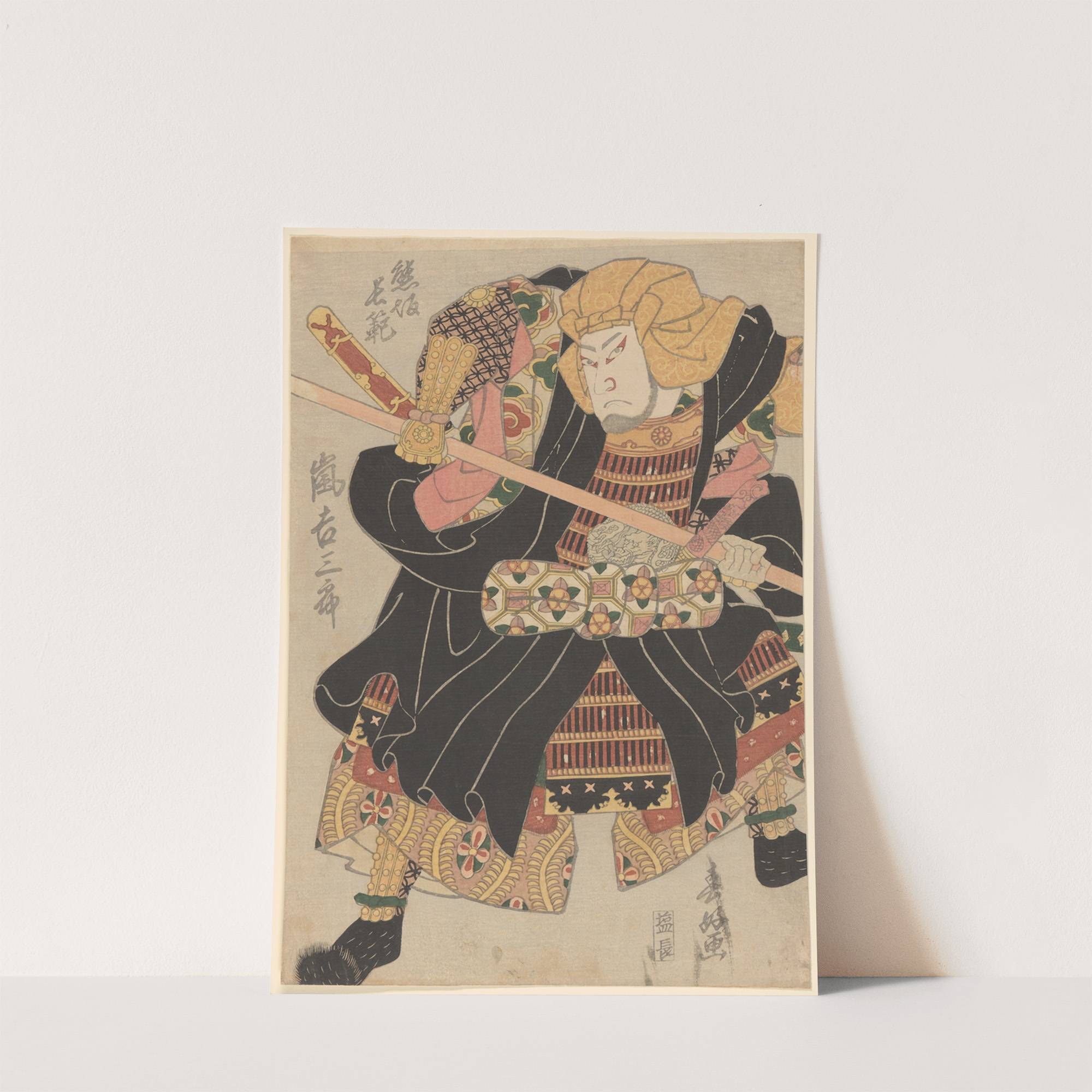 This striking print showcases "Warrior" by the renowned artist Shunman Shunko, expertly capturing the essence of traditional Japanese samurai art. The warrior is depicted in dynamic action, holding a sheathed sword with his right hand, ready for battle. His facial...