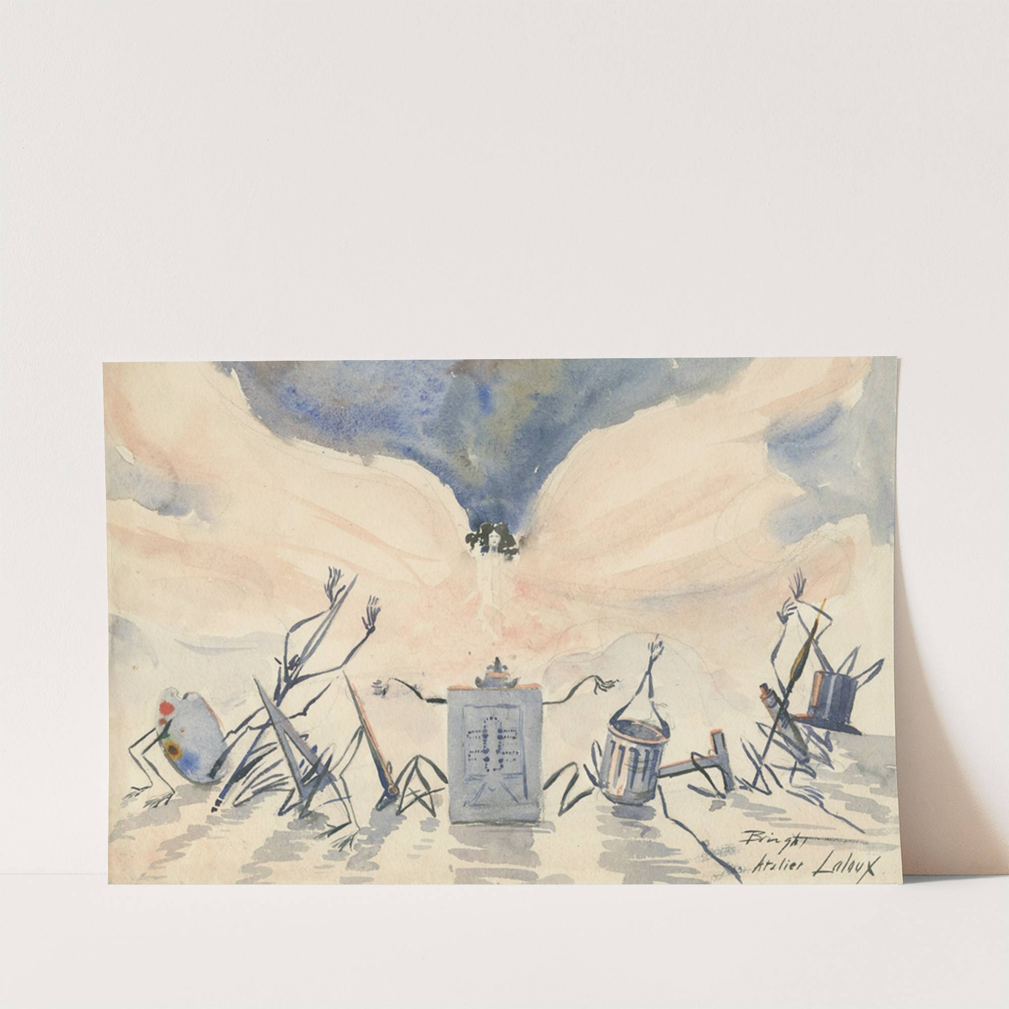 Watercolor with a tiny head of Fuller (1895) by Anonymous - Wall Art Print