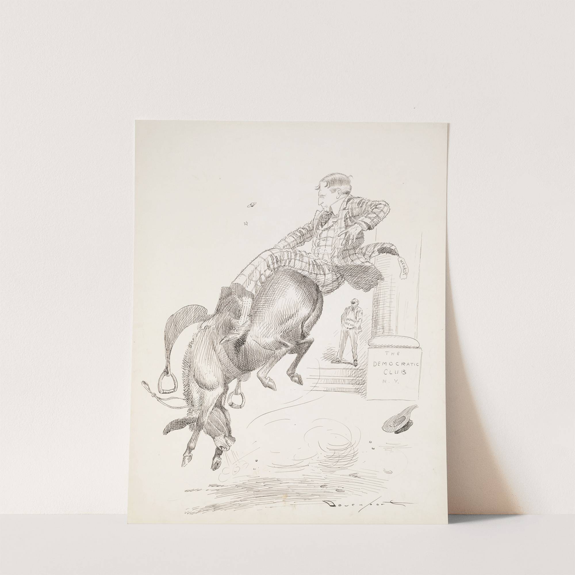 William Randolph Hearst about to fall off of a bucking Democrat donkey in front of the Democratic Club N.Y. by Homer Davenport - Wall Art Print