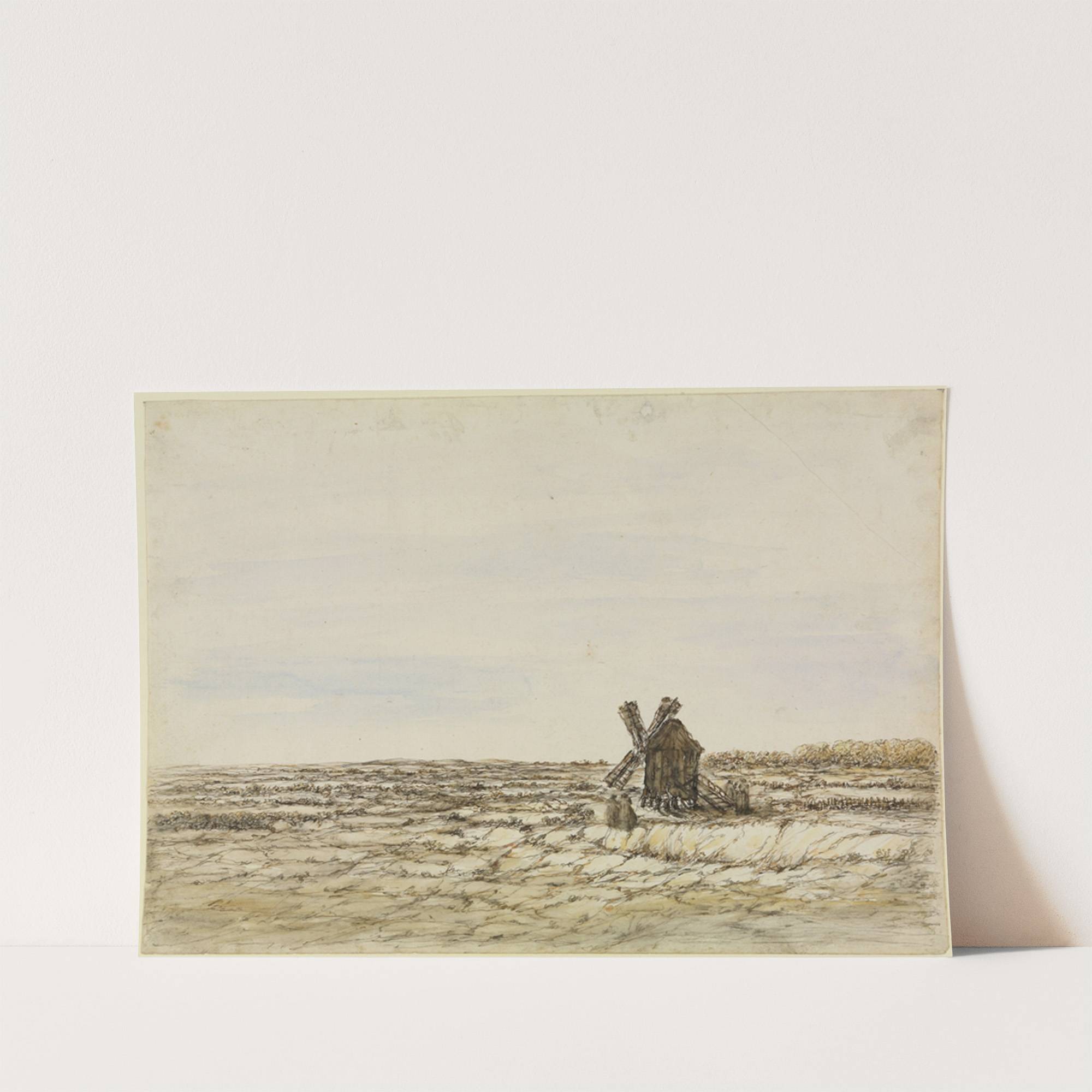This captivating art print features "Windmühle in weitem Brachfeld" by the talented artist Georges Michel. The artwork is a serene depiction of a solitary windmill standing amidst a vast, open field. Rendered with meticulous detail and subtle earth tones, the...