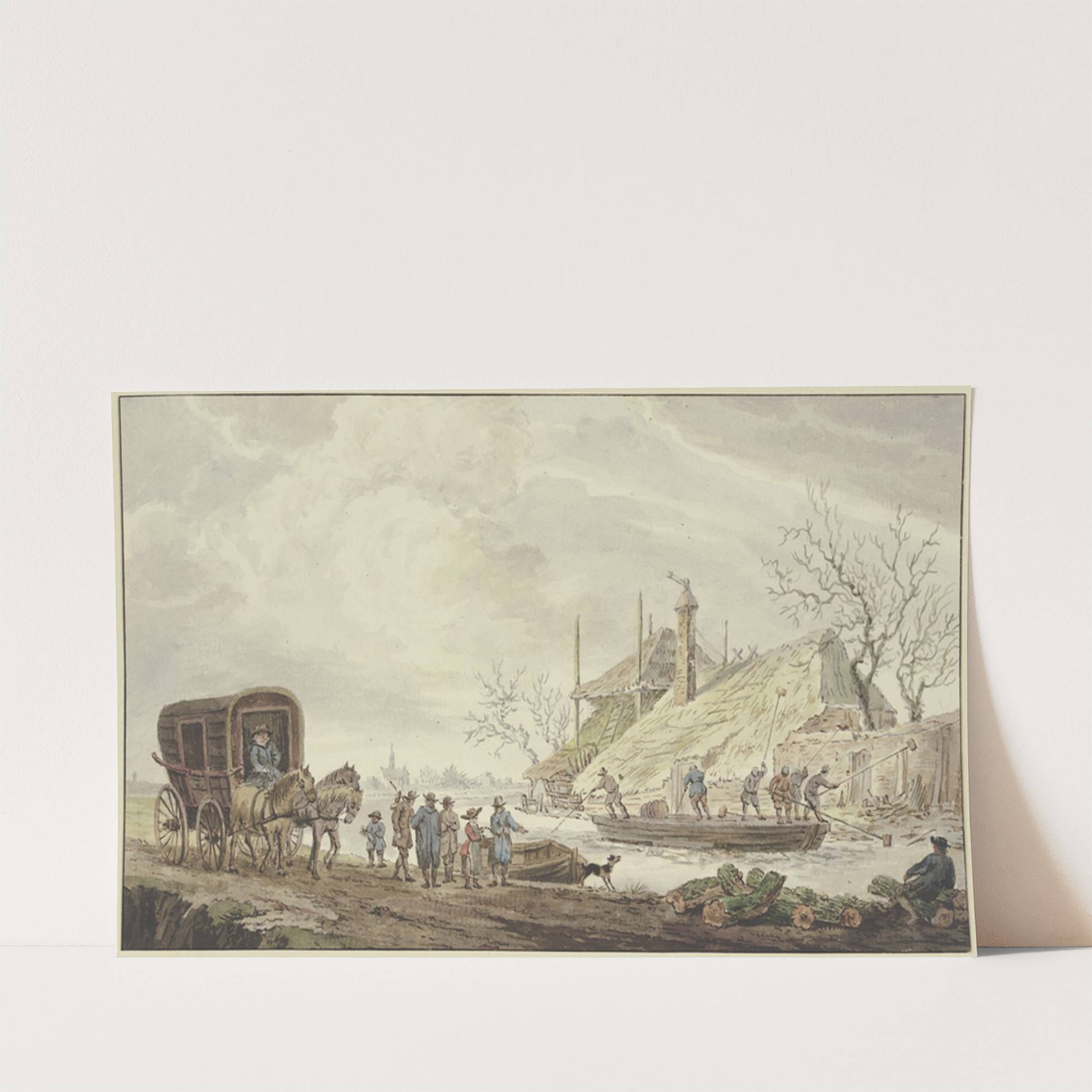 Winterlandschaft, an einem Bauernhof hauen Schiffer das Eis auf, links eine Kutsche by J. H. Van Loon - Wall Art Print