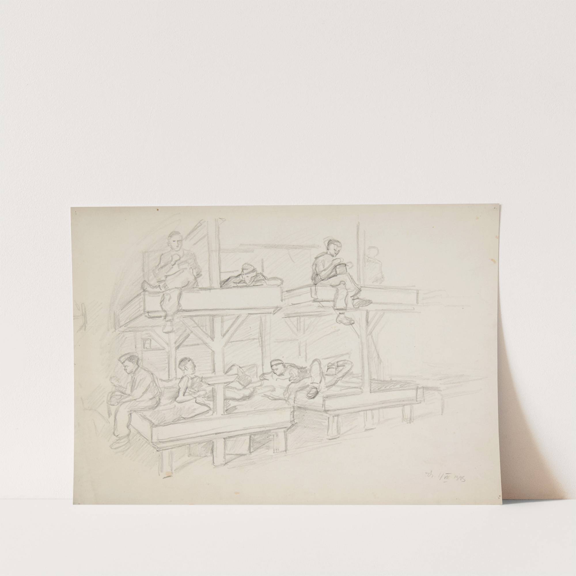 Wnętrze obozowego baraku z piętrowymi pryczami (1943) by Ivan Ivanec - Wall Art Print
