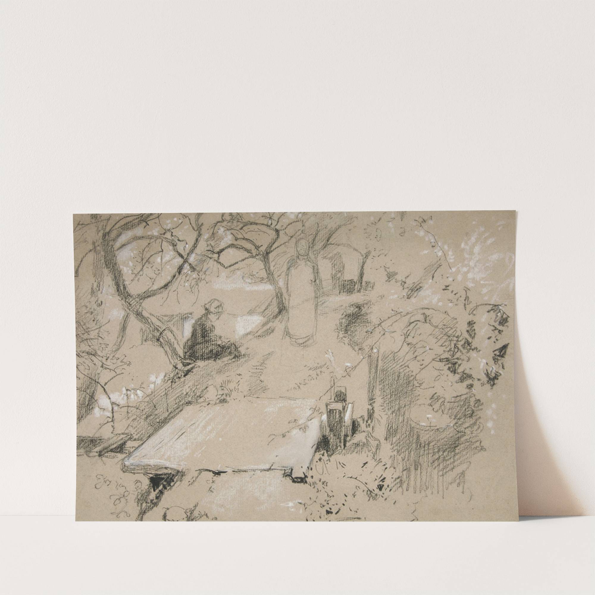 Woman seated on bench in a garden or public park by Edwin Austin Abbey - Wall Art Print