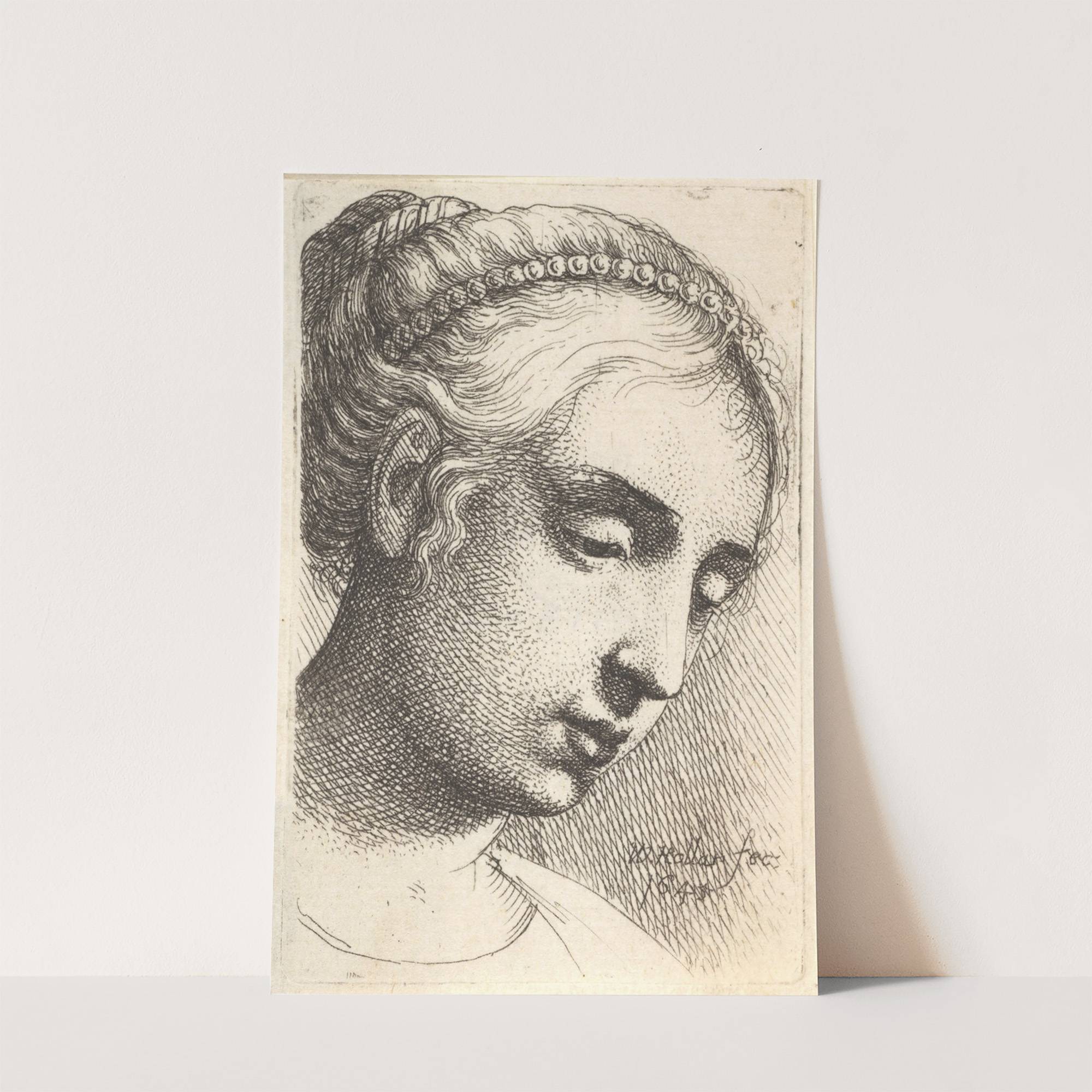 Woman with string of pearls in her hair looking downwards to right (1645) by Wenceslaus Hollar - Wall Art Print