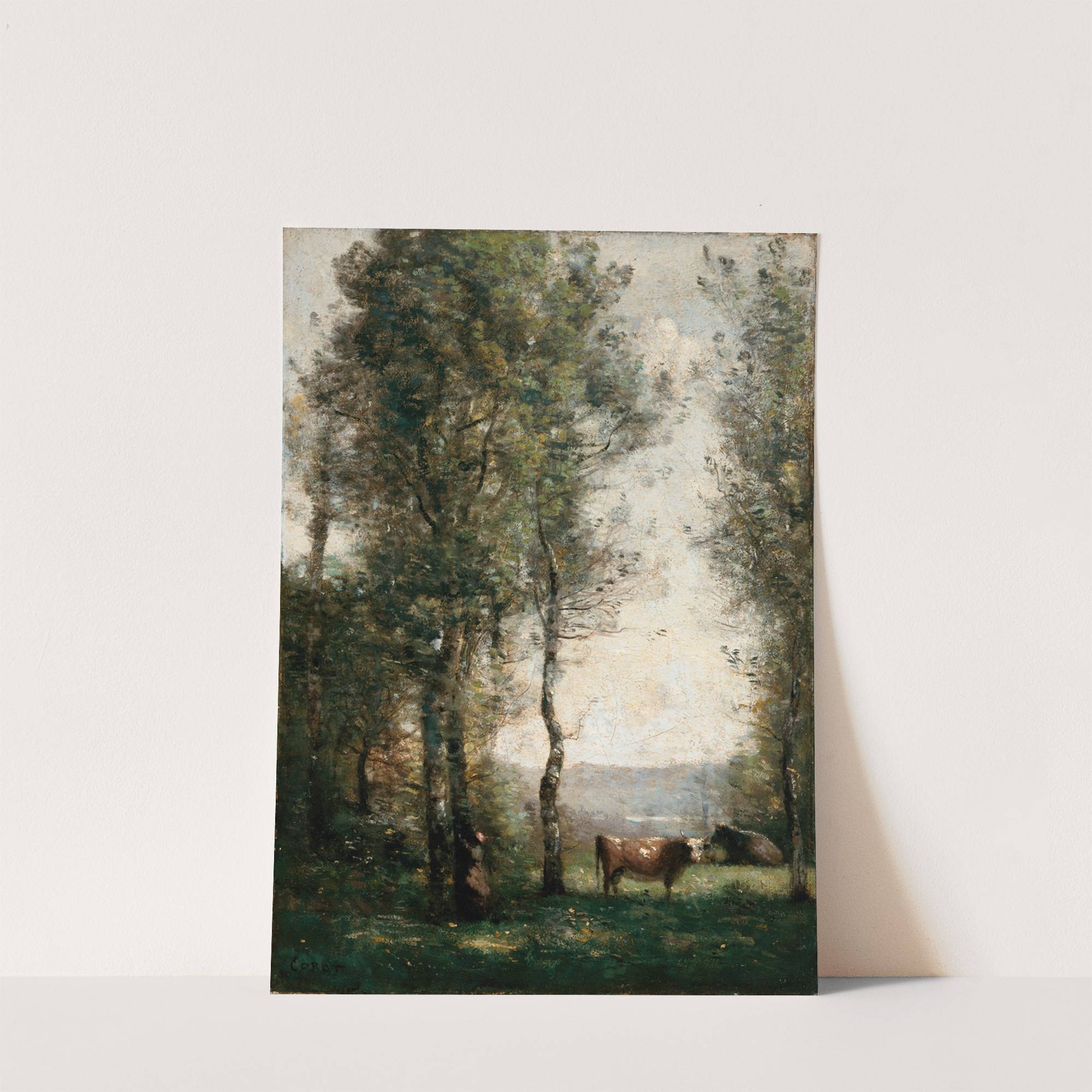 Wooded Landscape with Cows in a Clearing by Jean-Baptiste-Camille Corot - Wall Art Print