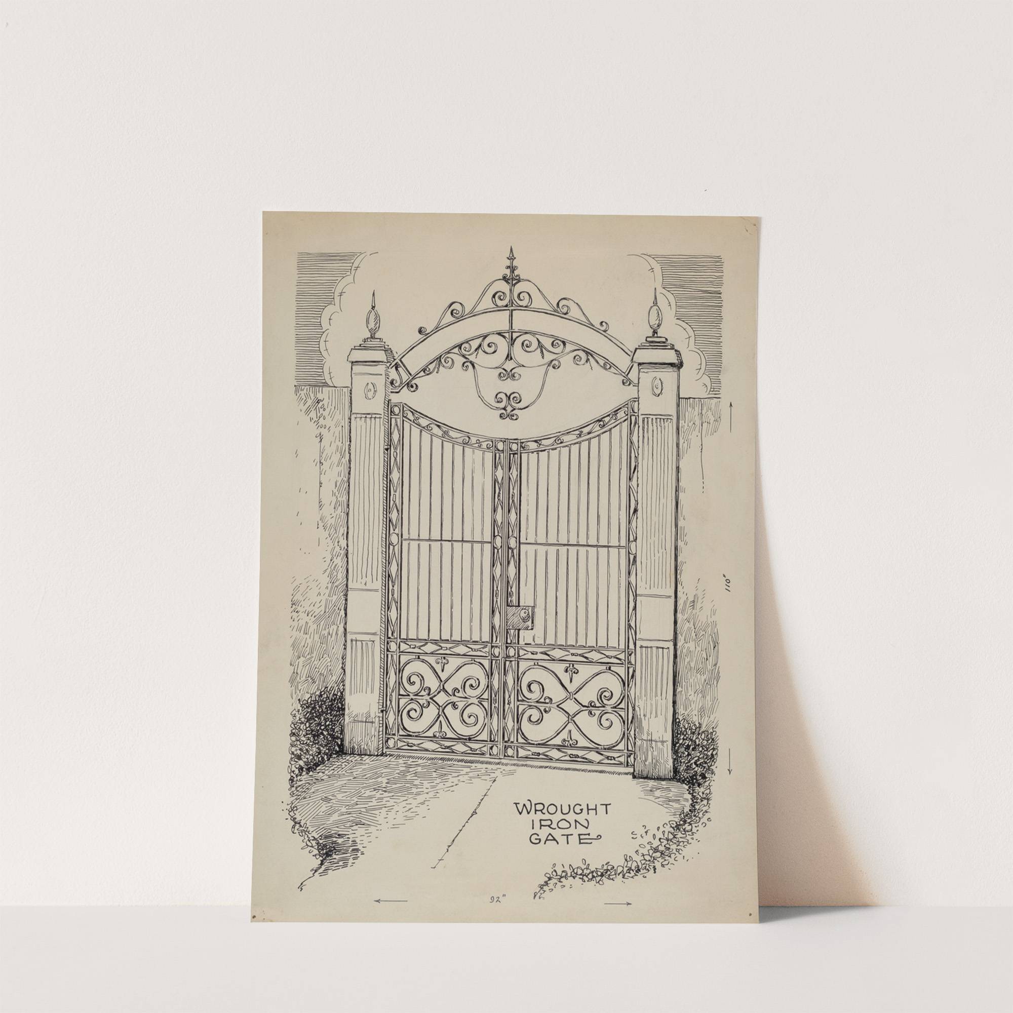This striking black-and-white illustration captures the intricately detailed wrought iron gate, titled "Wrought Iron Gate" by artist Al Curry. The gate features ornate scrollwork with symmetrical patterns that add an elegant touch to its sturdy design. The top of the...