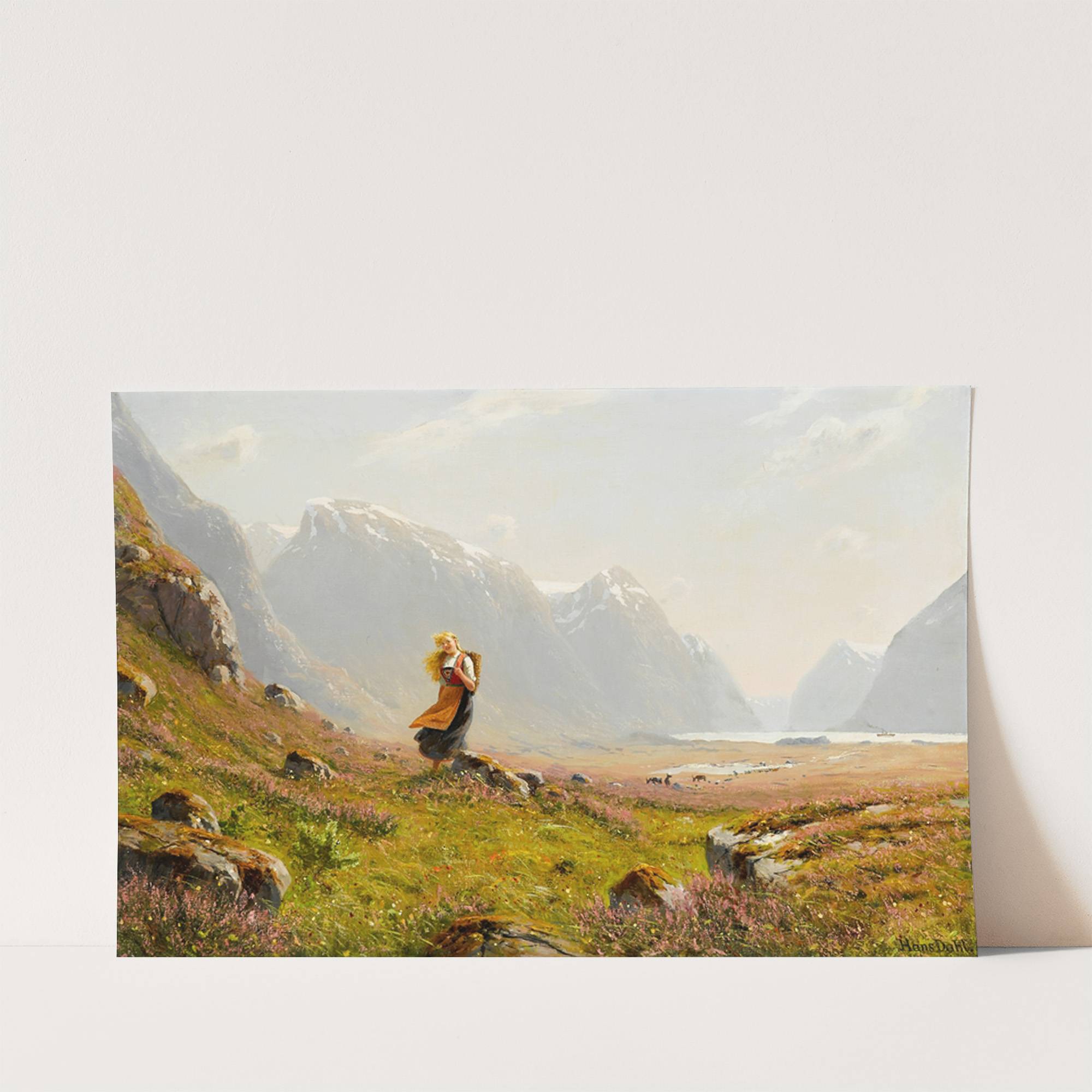 Young girl on a summer alpine stroll by Hans Dahl - Wall Art Print