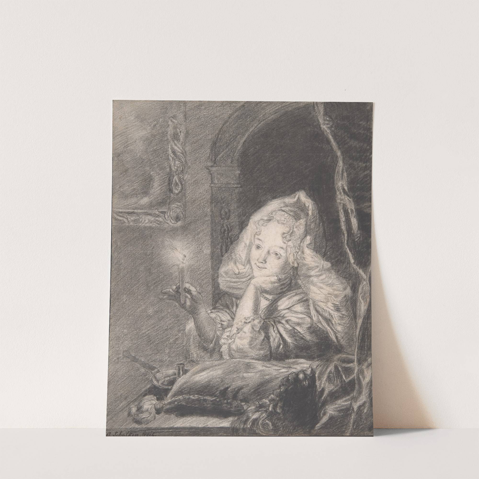 Young Woman Seated at a Table, Holding a Candle late by Godfried Schalcken - Wall Art Print