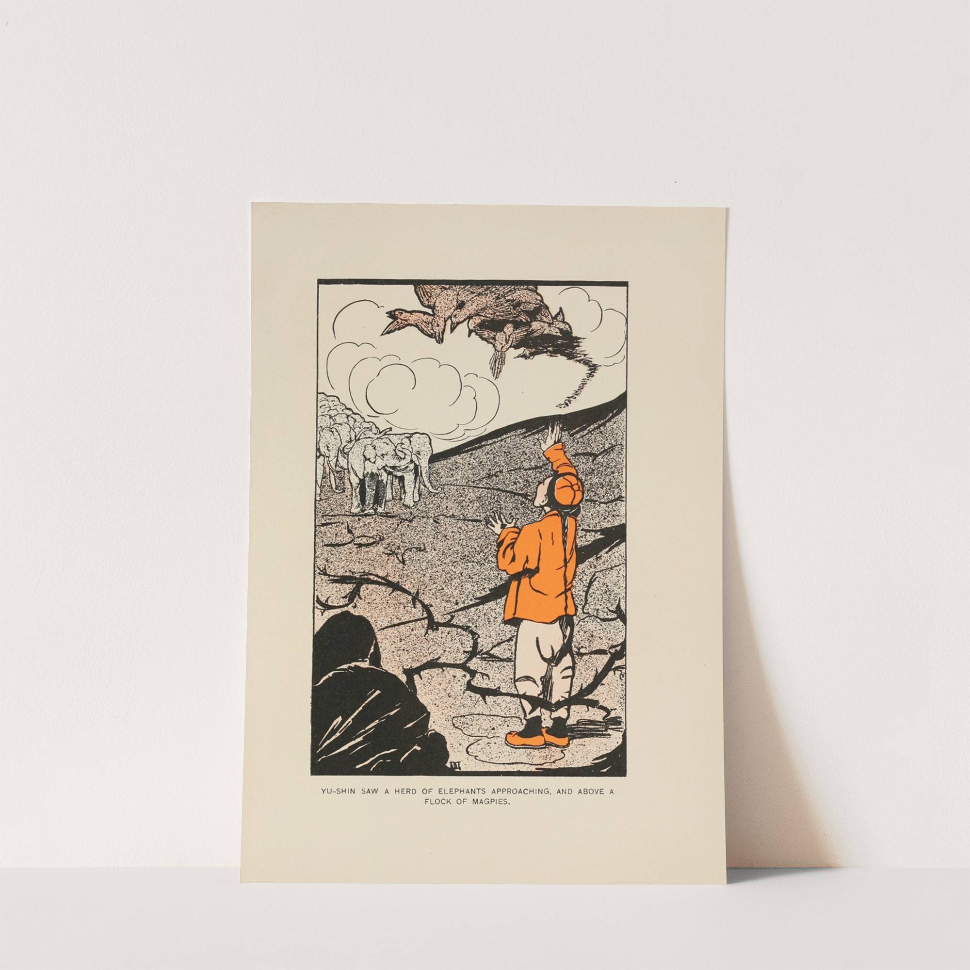 Yu-Shin saw a herd of elephants approaching, and above, a flock of magpies by Norman Hinsdale Pitman - Wall Art Print