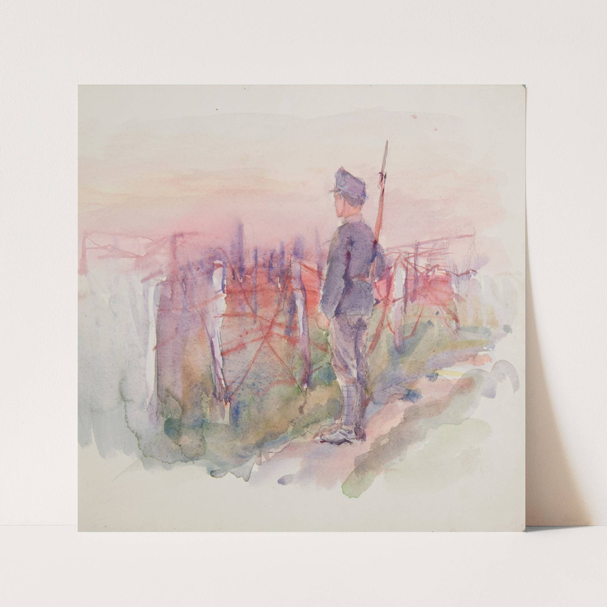Żołnierz Legionu Ukraińskich Strzelców Siczowych (1914-1920) stojący na warcie przy zasiekach (1915) by Ivan Ivanec - Wall Art Print