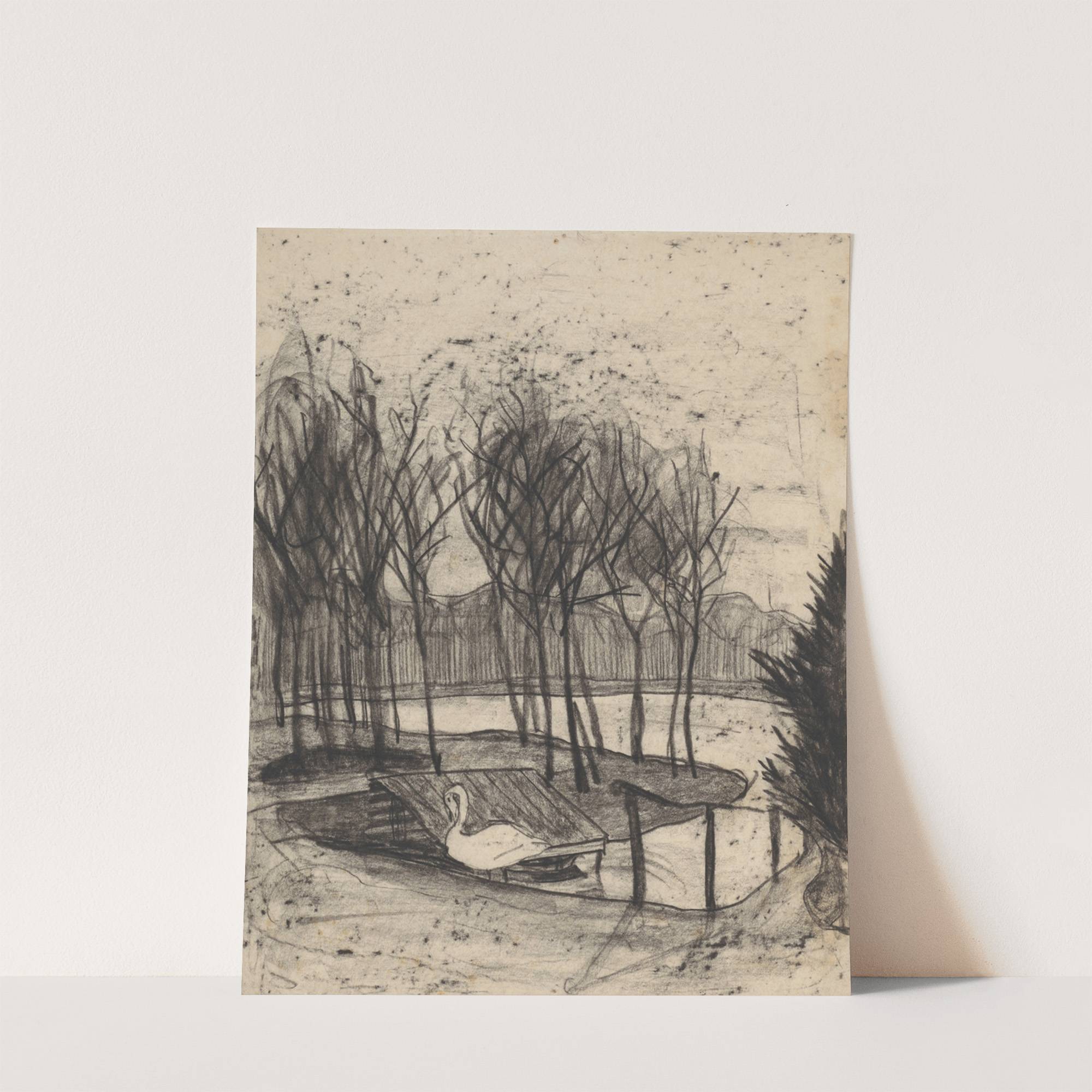 Zwaan bij een vijver by Theo Nieuwenhuis  - Wall Art Print
