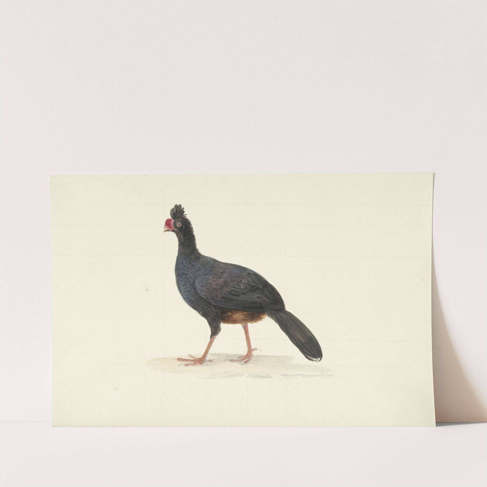 Zwarte loopvogel met korte dikke rode snavel by Circle of François Levaillant - Wall Art Print