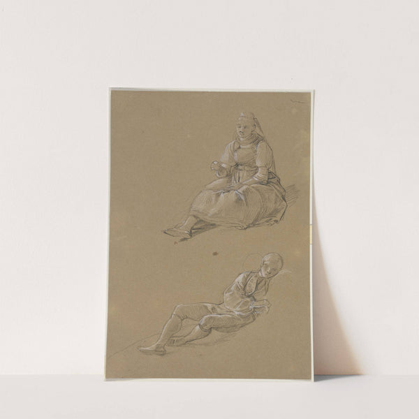 Studienblatt; Auf de Erde sitzendes Bauernmädchen; schlafender Bauernjunge by Jakob Becker