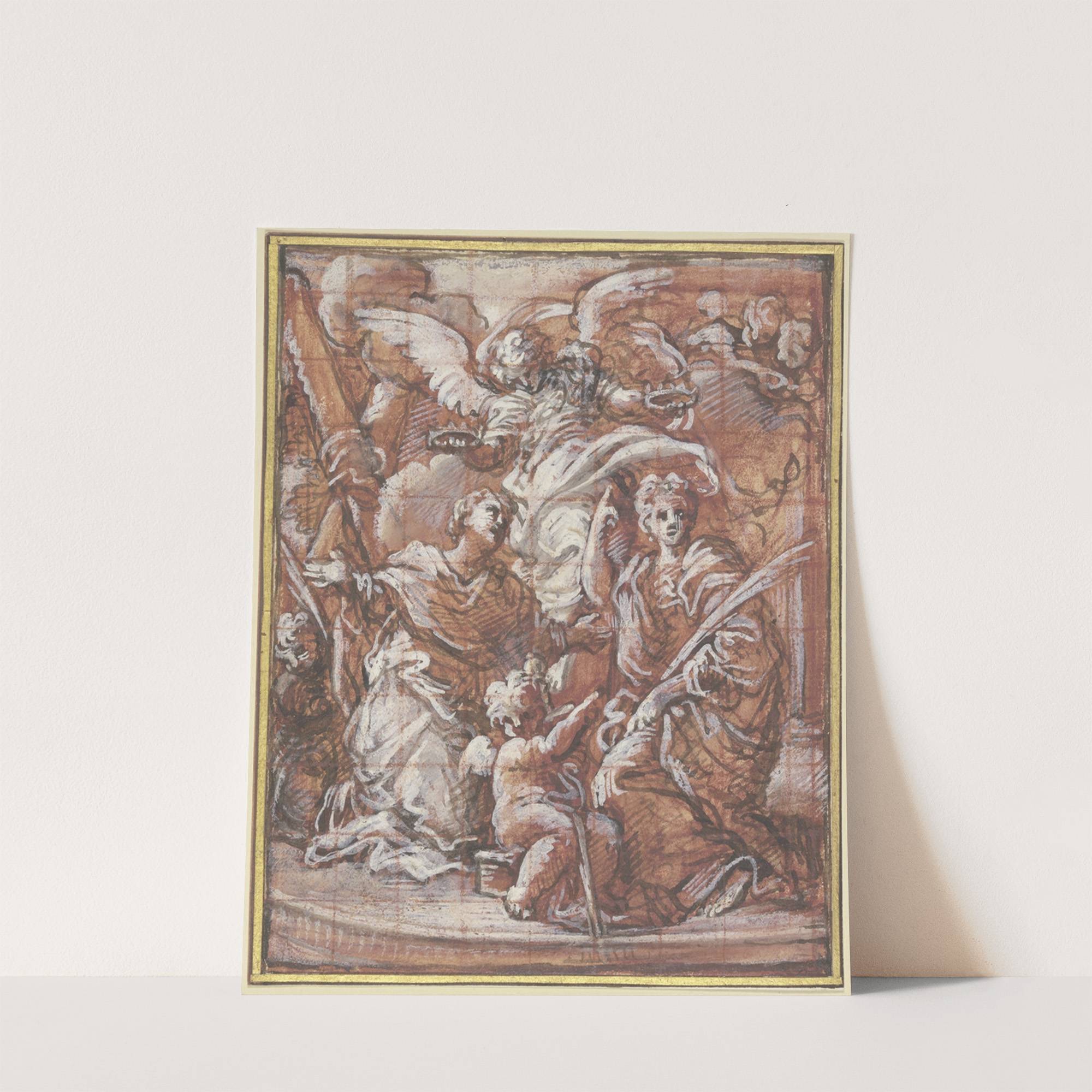 Zwei Heilige werden von einem Engel gekrönt by Giuseppe Passeri - Wall Art Print