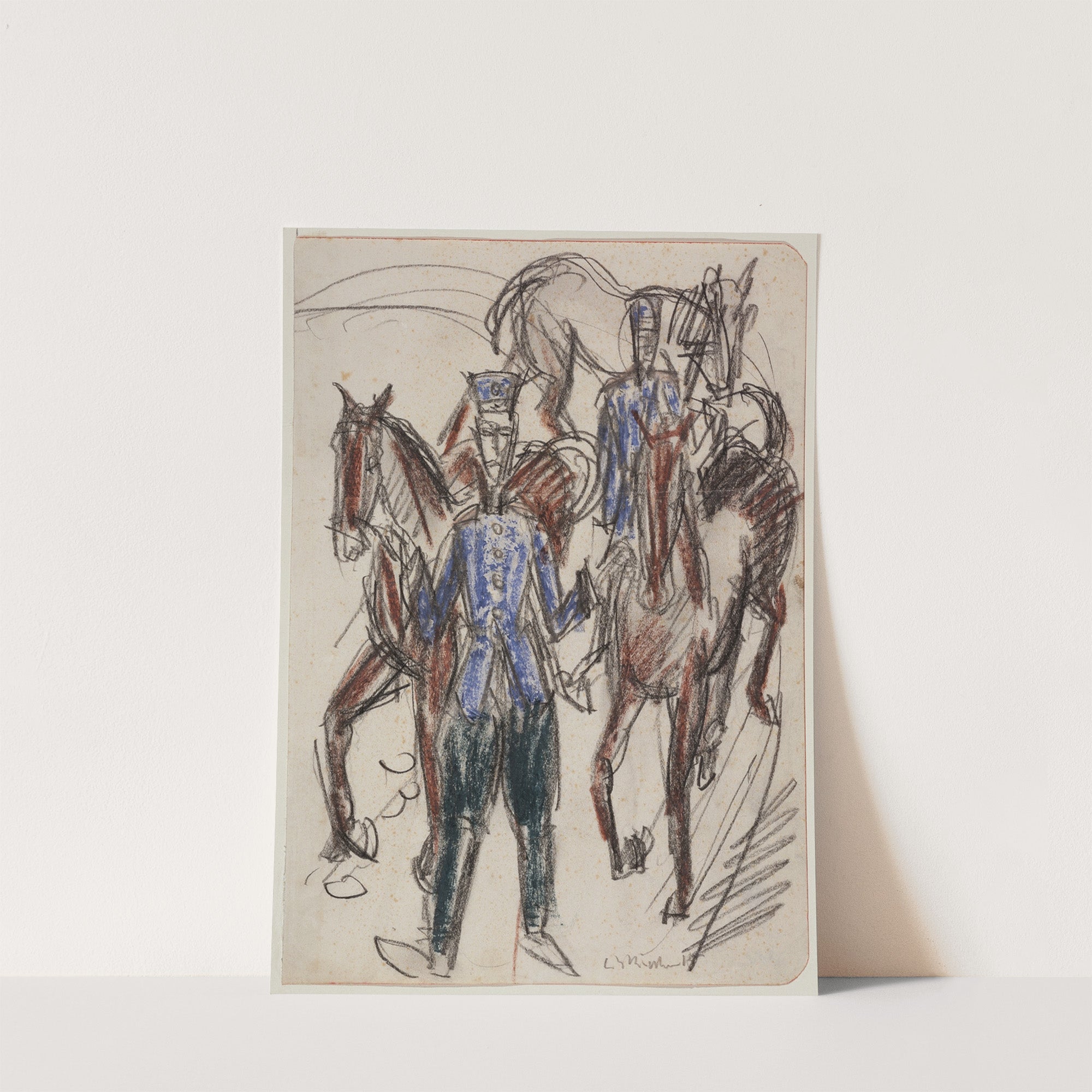 Zwei reitende Artilleristen mit drei Pferden (1915) by Ernst Ludwig Kirchner - Wall Art Print
