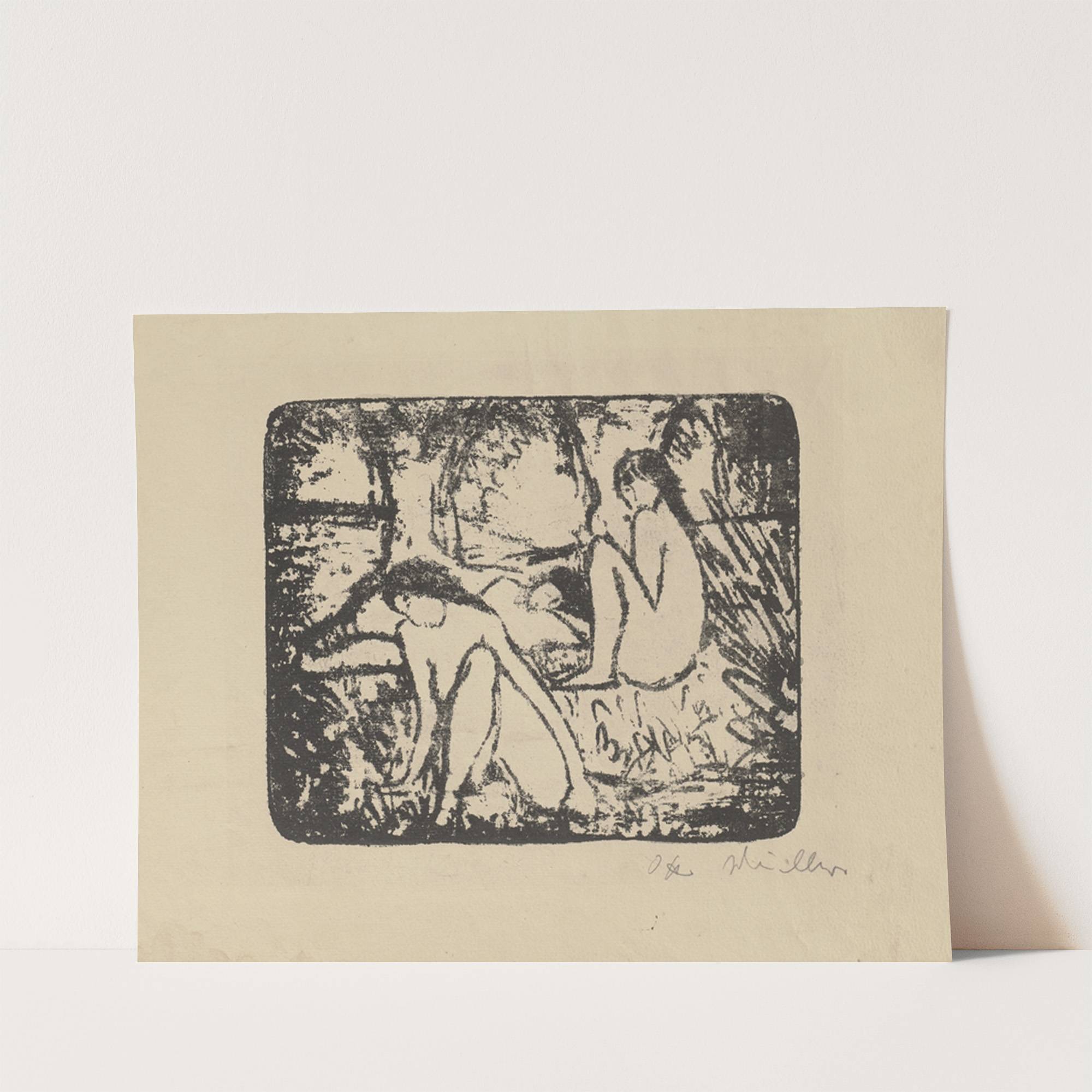Zwei sitzende Mädchen vor liegender Figur by Otto Mueller - Wall Art Print