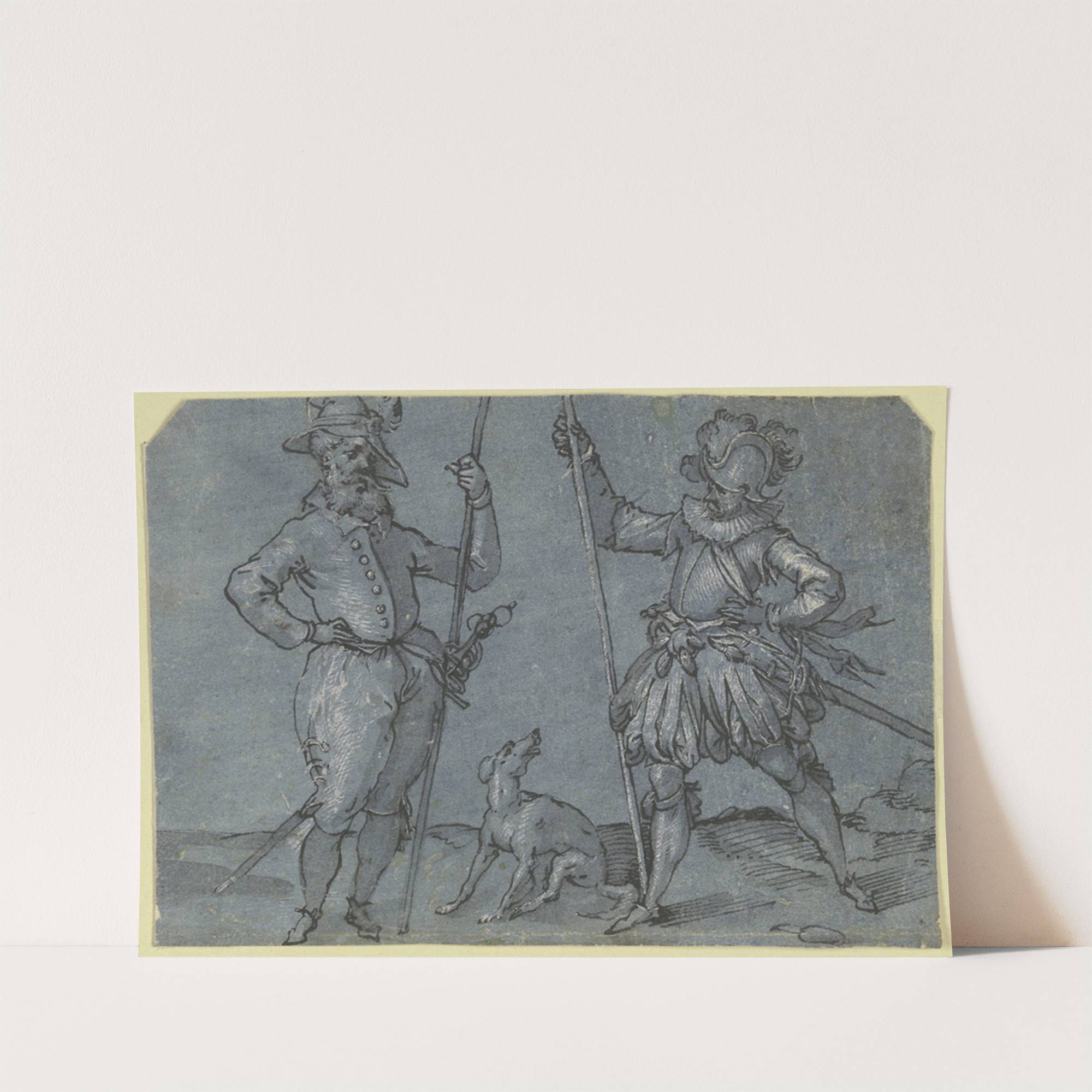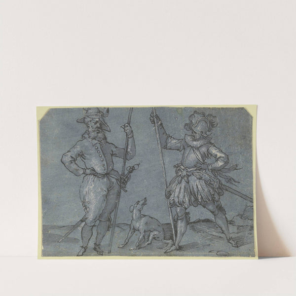 Zwei stehende Krieger, auf ihre Lanzen gestützt, zwischen ihnen ein Hund by Jost Amman - Wall Art Print