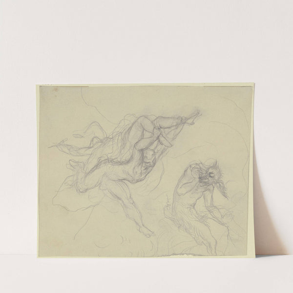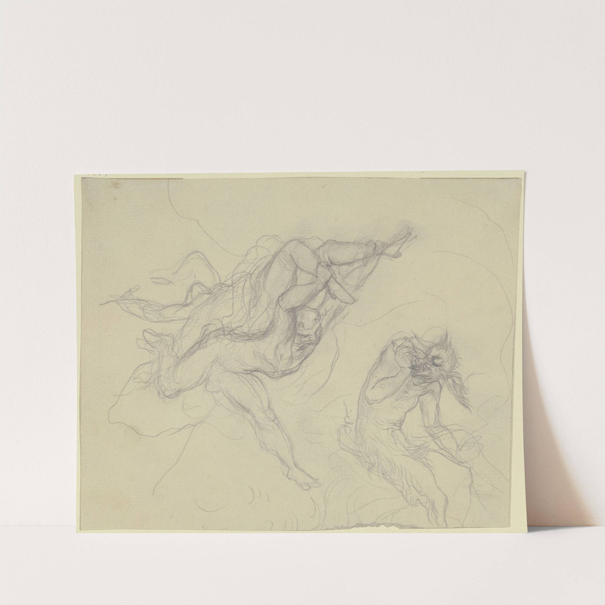 Zwei Teufel, der linke eine Frau auf dem Rücken tragend by Victor Müller - Wall Art Print